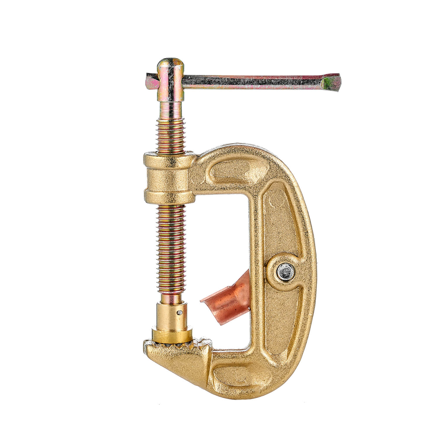 Клемма заземления КЗ-33 рассчитана на сварочный ток до 300 Ампер. Гарантирует плотный контакт в месте подключения. Струбцина состоит из G-образного основания с креплением под кабель и винтового контактного упора. Резьба на винтовом контактном упоре струбцины 12 мм. Ширина губок составляет 15 мм.