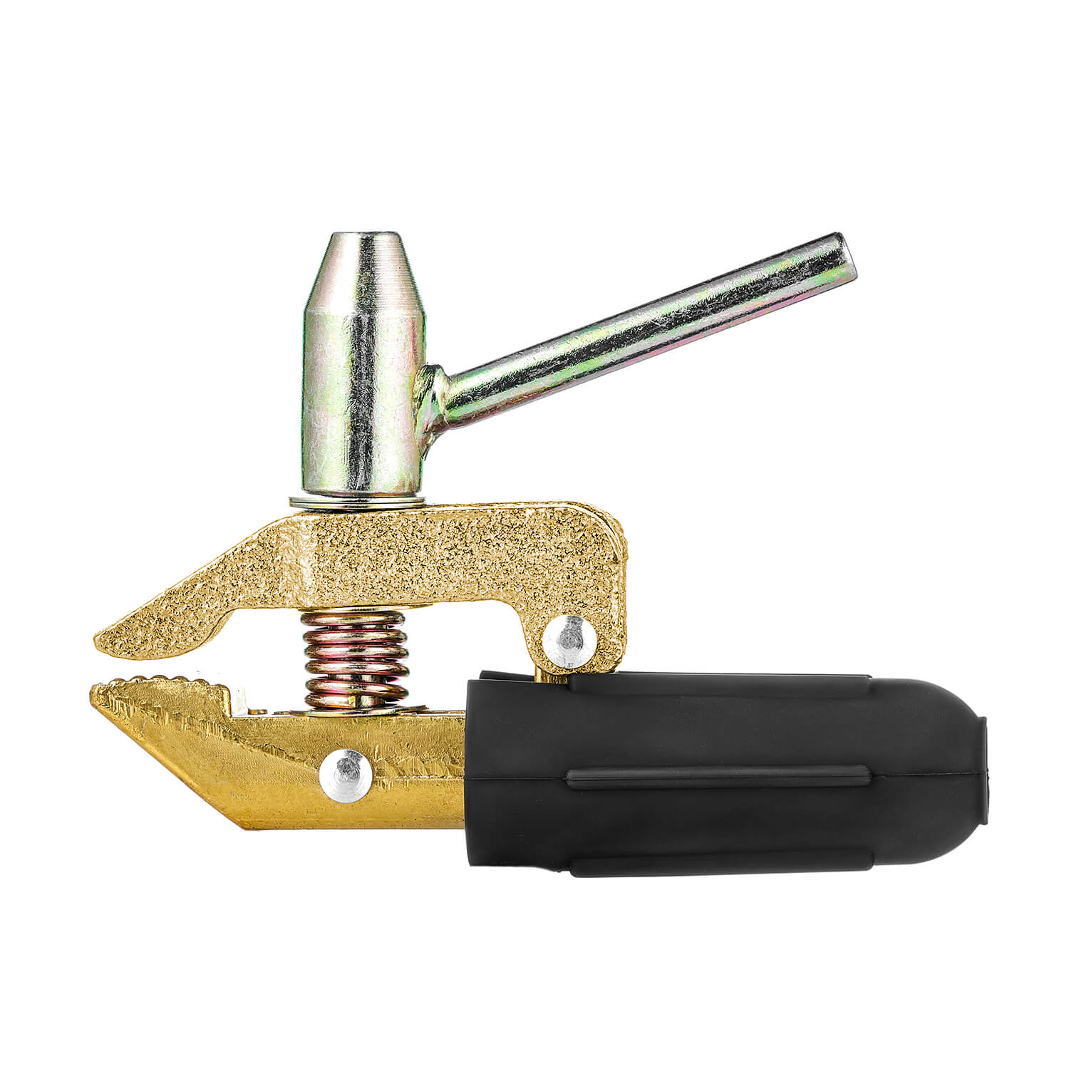Клемма заземления КЗ-65 рассчитана на сварочный ток до 600 Ампер. Гарантирует плотный контакт в месте подключения за счет губок, поджимаемые ручкой на резьбовом соединении М10х1,5. Предназначена только для работы с электросварочным или плазменным аппаратом. Струбцина оснащена прорезиненной железной ручкой.