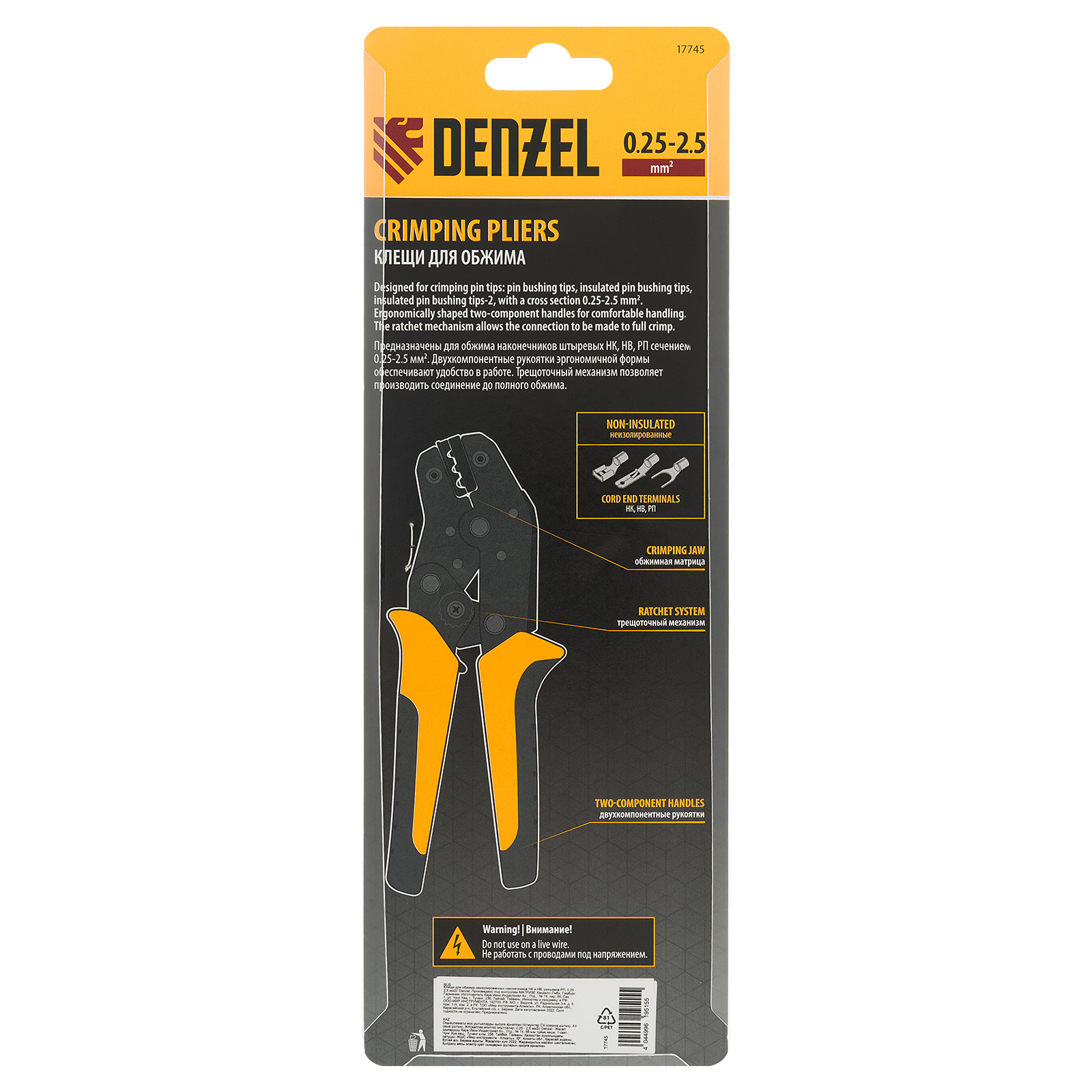 Клещи для обжима неизолированных наконечников НК и НВ, разъемов РП, 0,25 - 2,5 мм2 Denzel