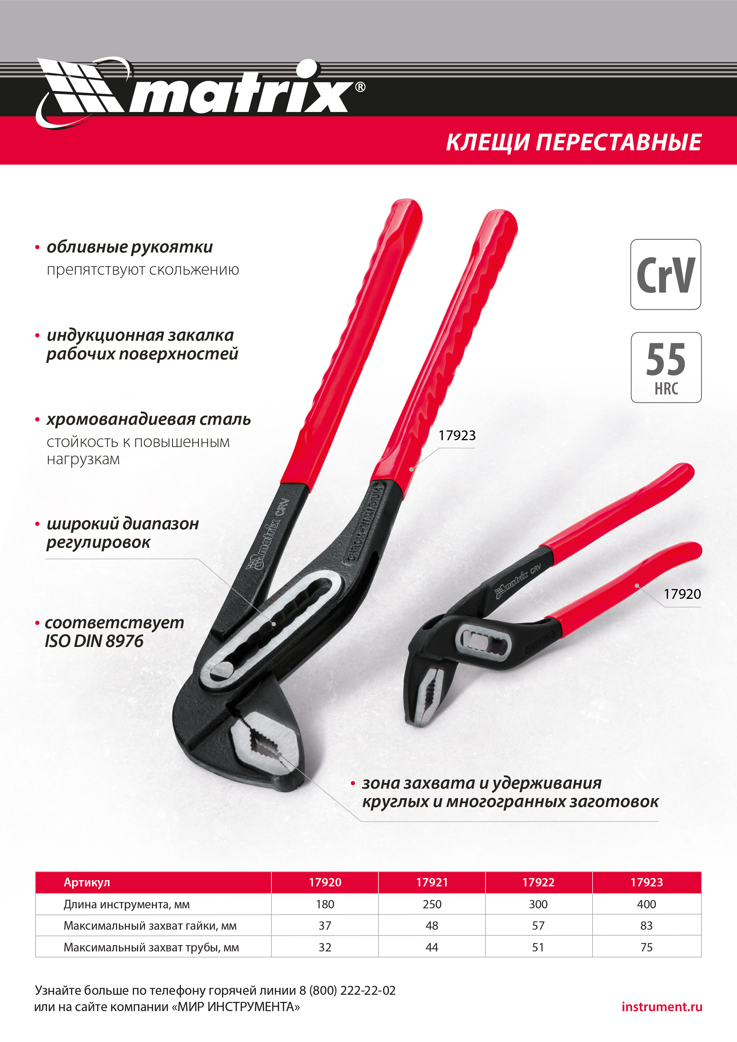 Клещи переставные 300 мм, хром-ванадий, обливные рукоятки Matrix в Санкт-Петербурге