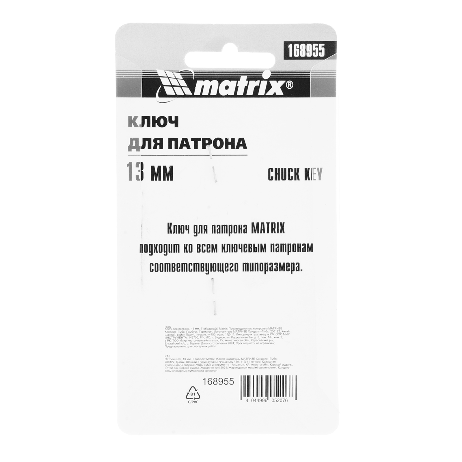 Ключ для патрона, 13 мм, Т-образный Matrix