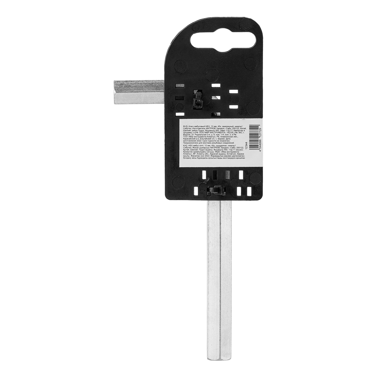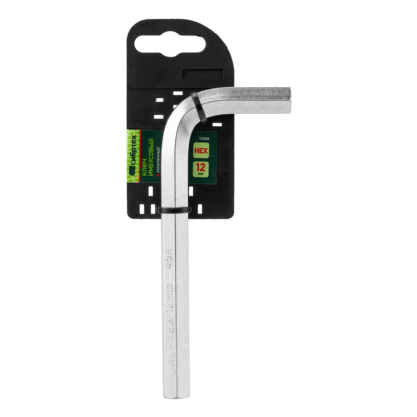 Ключ имбусовый никелированный Сибртех 12344 размером 12 мм, из закаленной стали 45Х, используется для монтажа и демонтажа резьбового крепежа с шестигранным шлицем HEX. Пригодится для сборки мебели, ремонта бытовой техники, велосипедов и автомобилей.