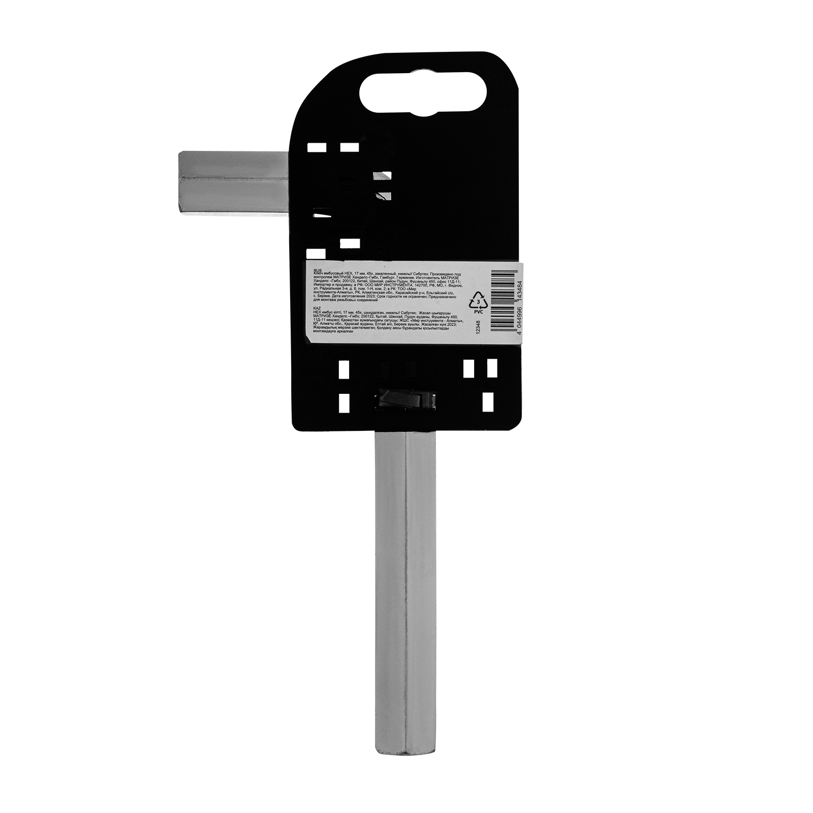 Ключ имбусовый никелированный Сибртех 12348 размером 17 мм, из закаленной стали 45Х, используется для монтажа и демонтажа резьбового крепежа с шестигранным шлицем HEX. Пригодится для сборки мебели, ремонта бытовой техники, велосипедов и автомобилей.
