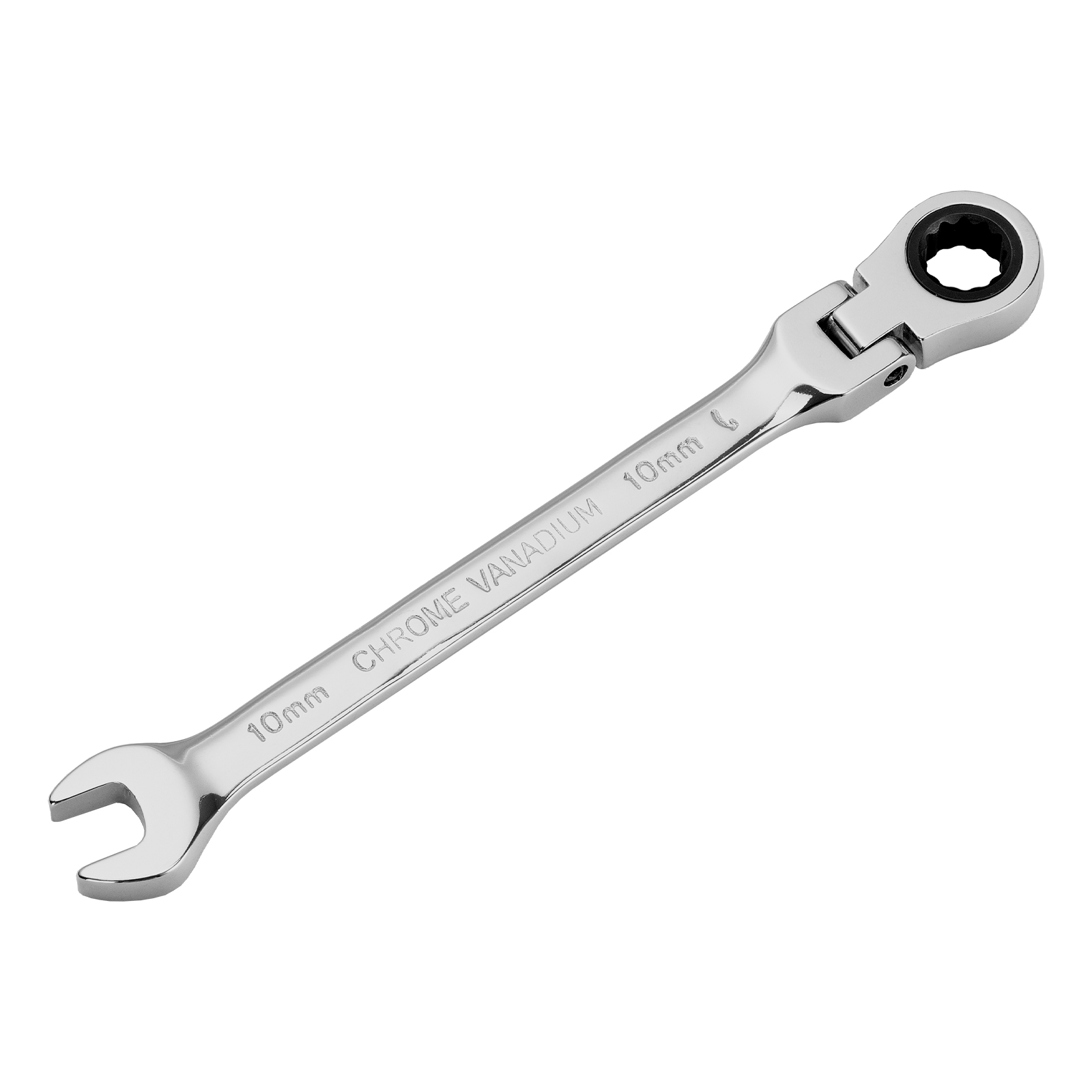 Ключ комбинированный трещоточный, 10 мм, CrV, шарнирный, зеркальный хром Matrix Professional