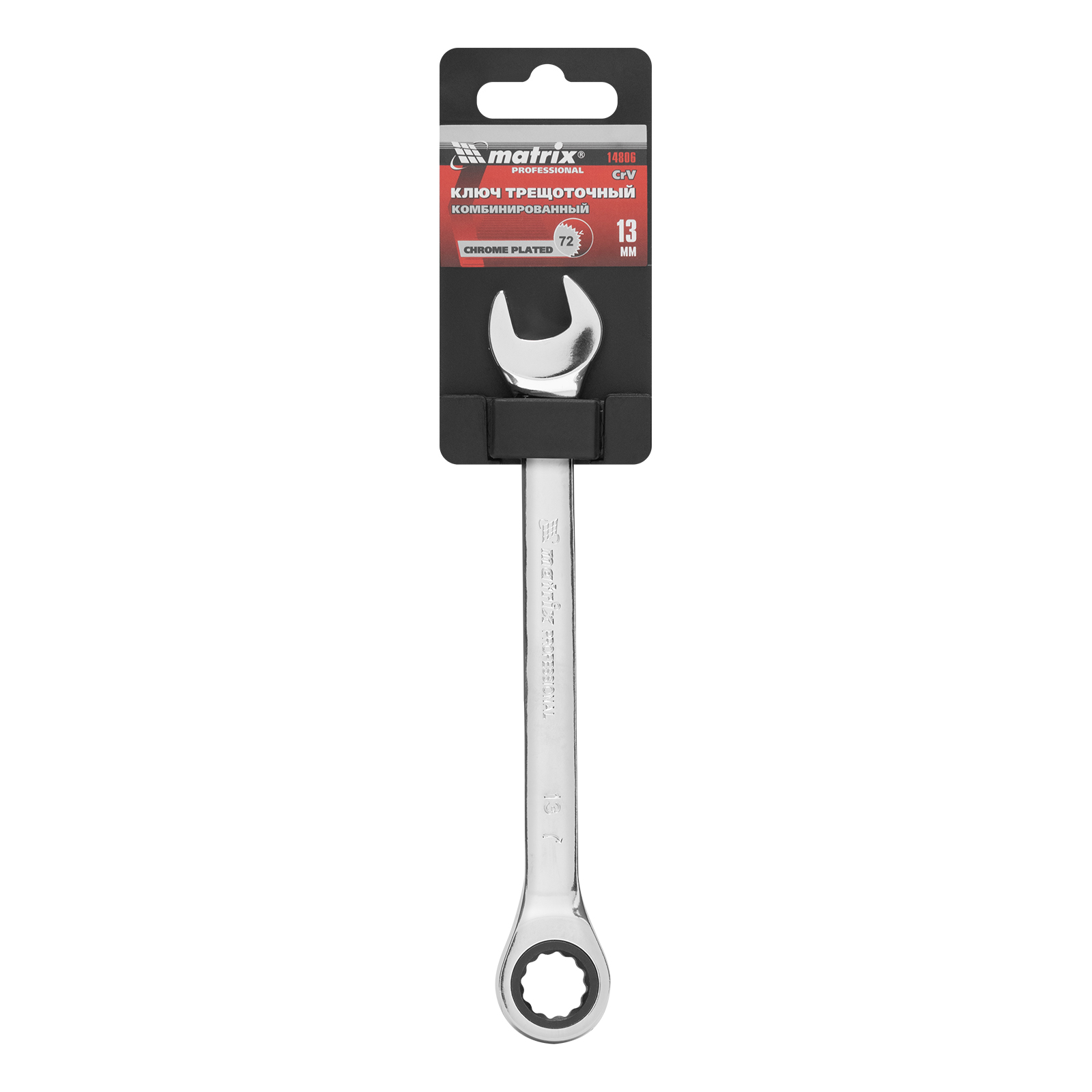 Ключ комбинированный трещоточный, 13 мм, CrV, зеркальный хром Matrix Professional