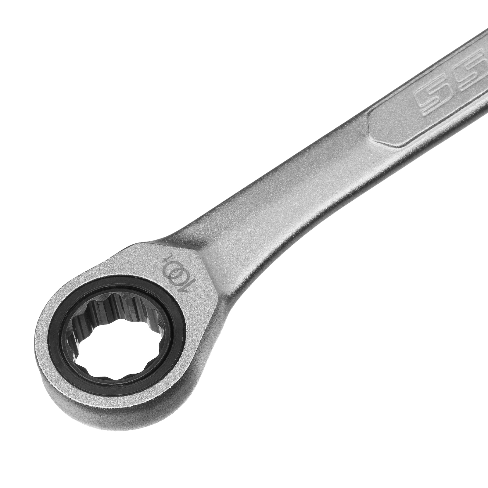 Комбинированный трещоточный ключ Gross 14852, 14 мм, используется при монтаже и демонтаже резьбовых соединений. Инструмент имеет как рожковую, так и накидную часть, что повышает его функциональность. У накидной части 12 внутренних граней, что увеличивает площадь соприкосновения с головкой крепежа и снижает риск ее деформации. Ключ применяется как в автосервисах, так и для самостоятельного ремонта автомобилей.