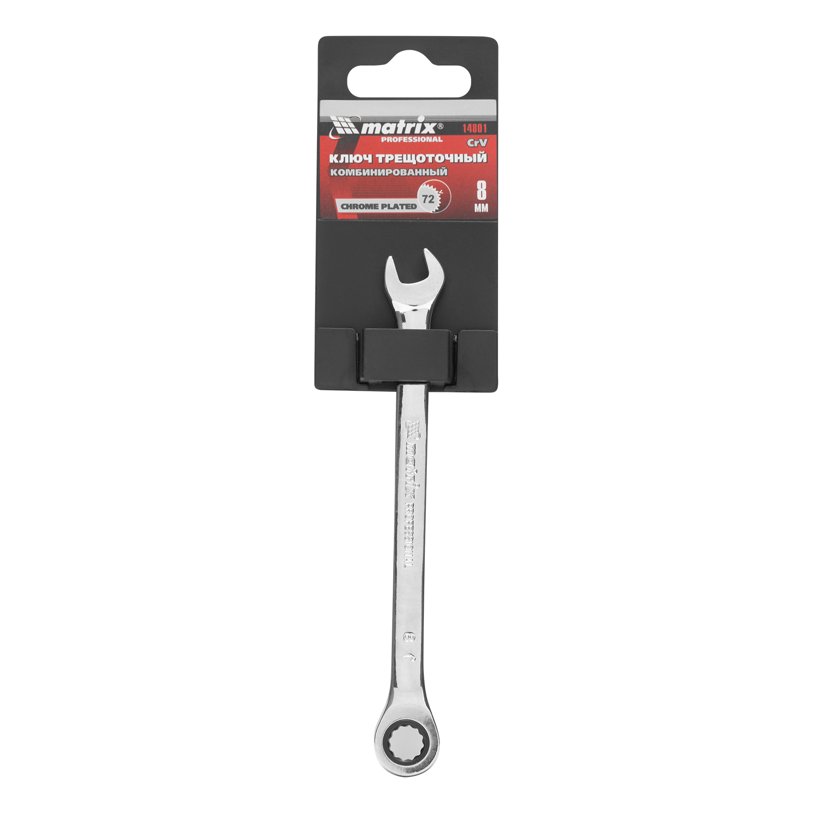 Ключ комбинированный трещоточный, 8 мм, CrV, зеркальный хром Matrix Professional