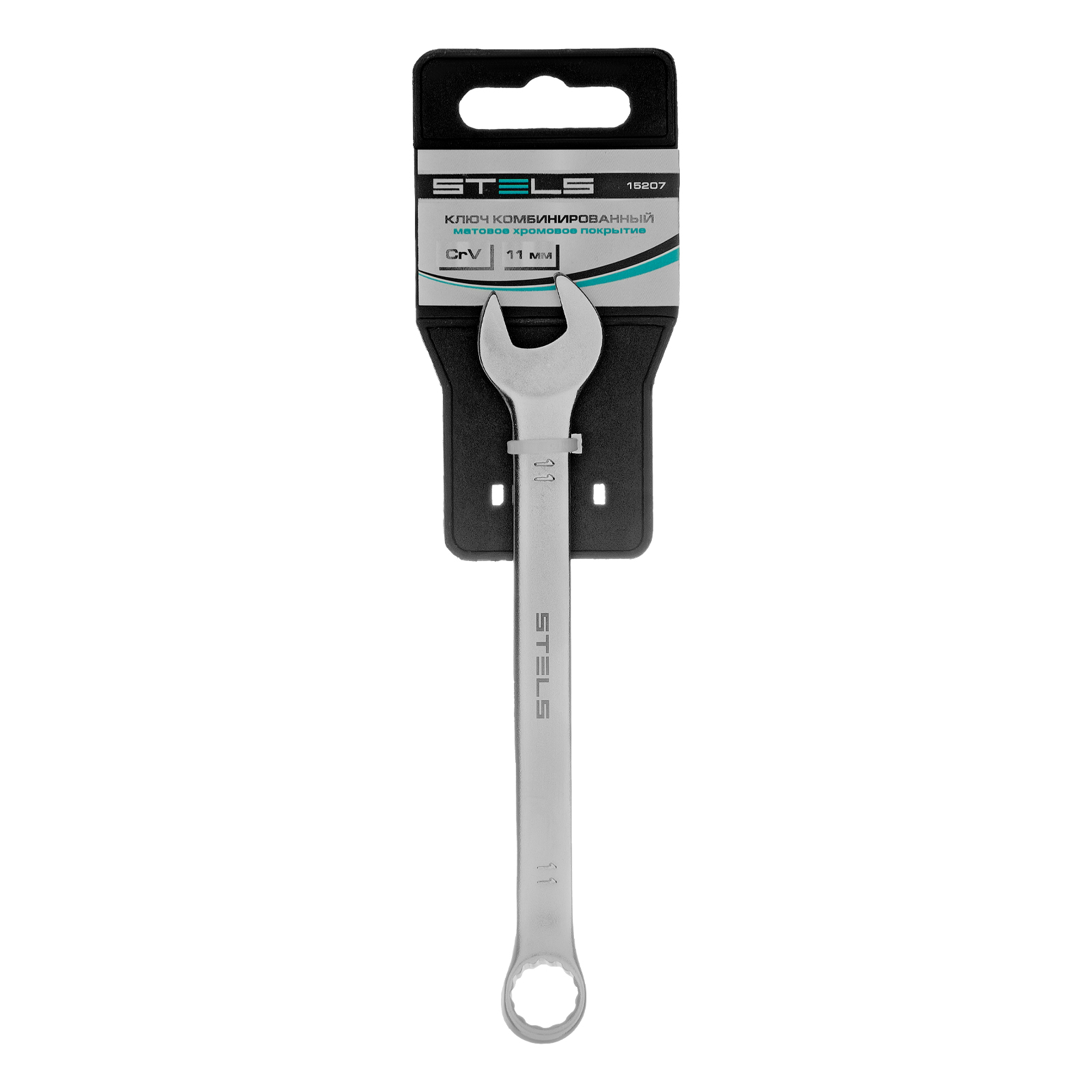 Ключ комбинированный, 11 мм, CrV, матовый хром Stels