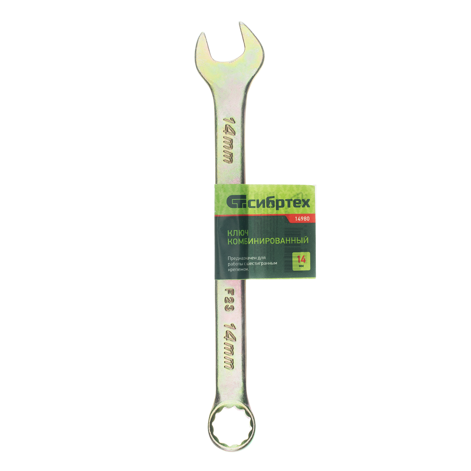 Ключ комбинированный, 14 мм, желтый цинк Сибртех