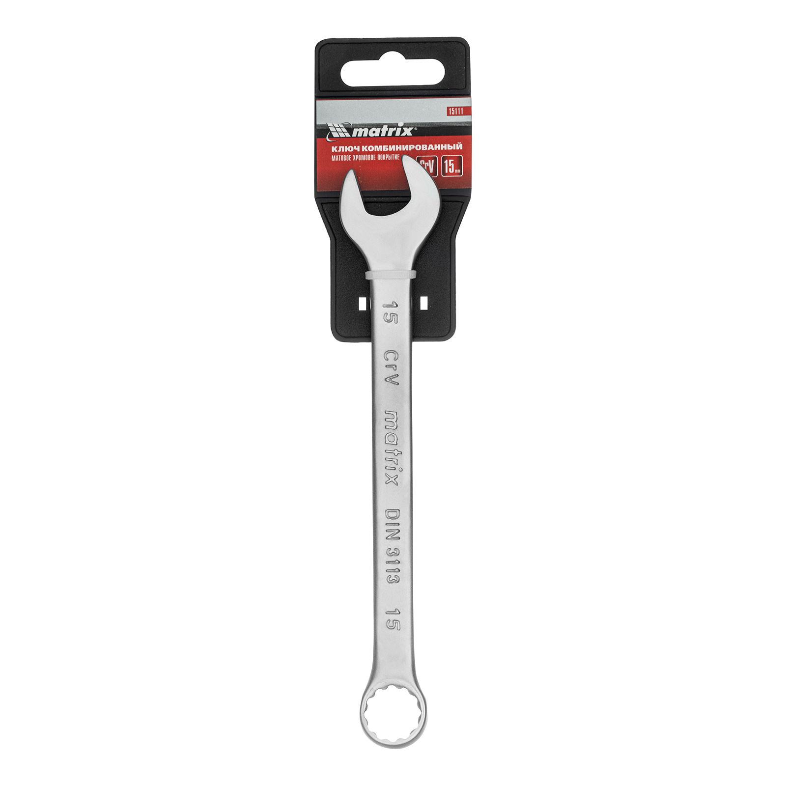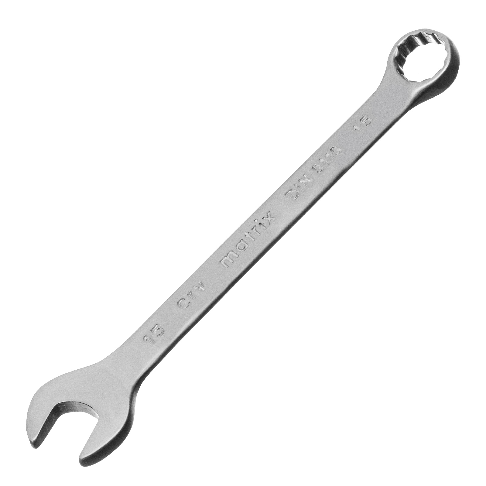 Ключ комбинированный, 15 мм, CrV, матовый хром Matrix