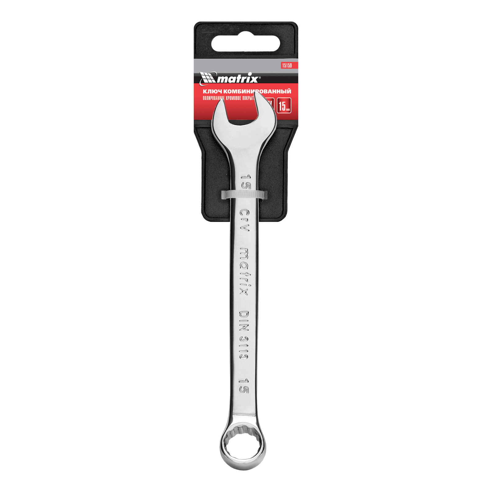 Ключ комбинированный, 15 мм, CrV, полированный хром Matrix в Санкт-Петербурге