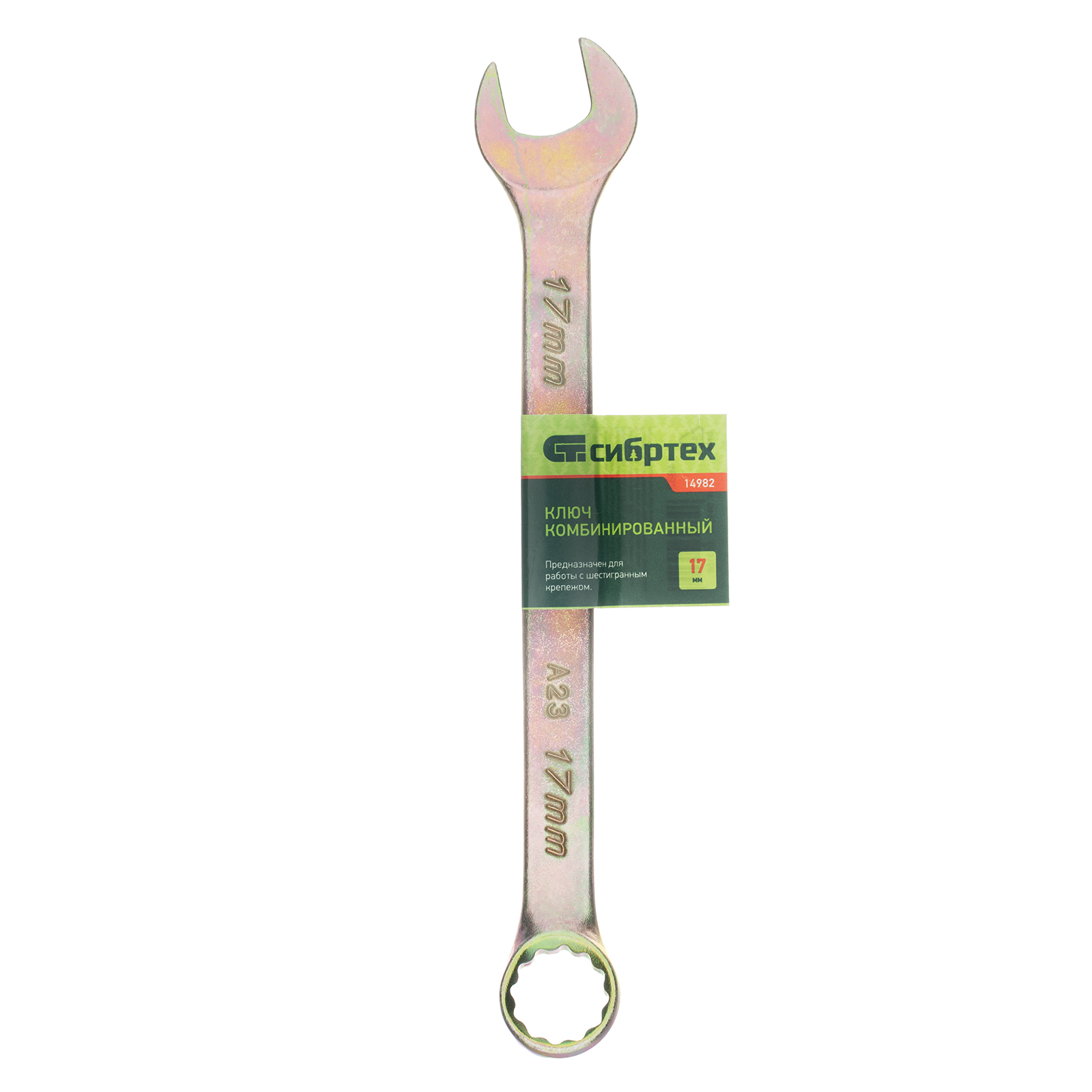 Ключ комбинированный, 17 мм, желтый цинк Сибртех