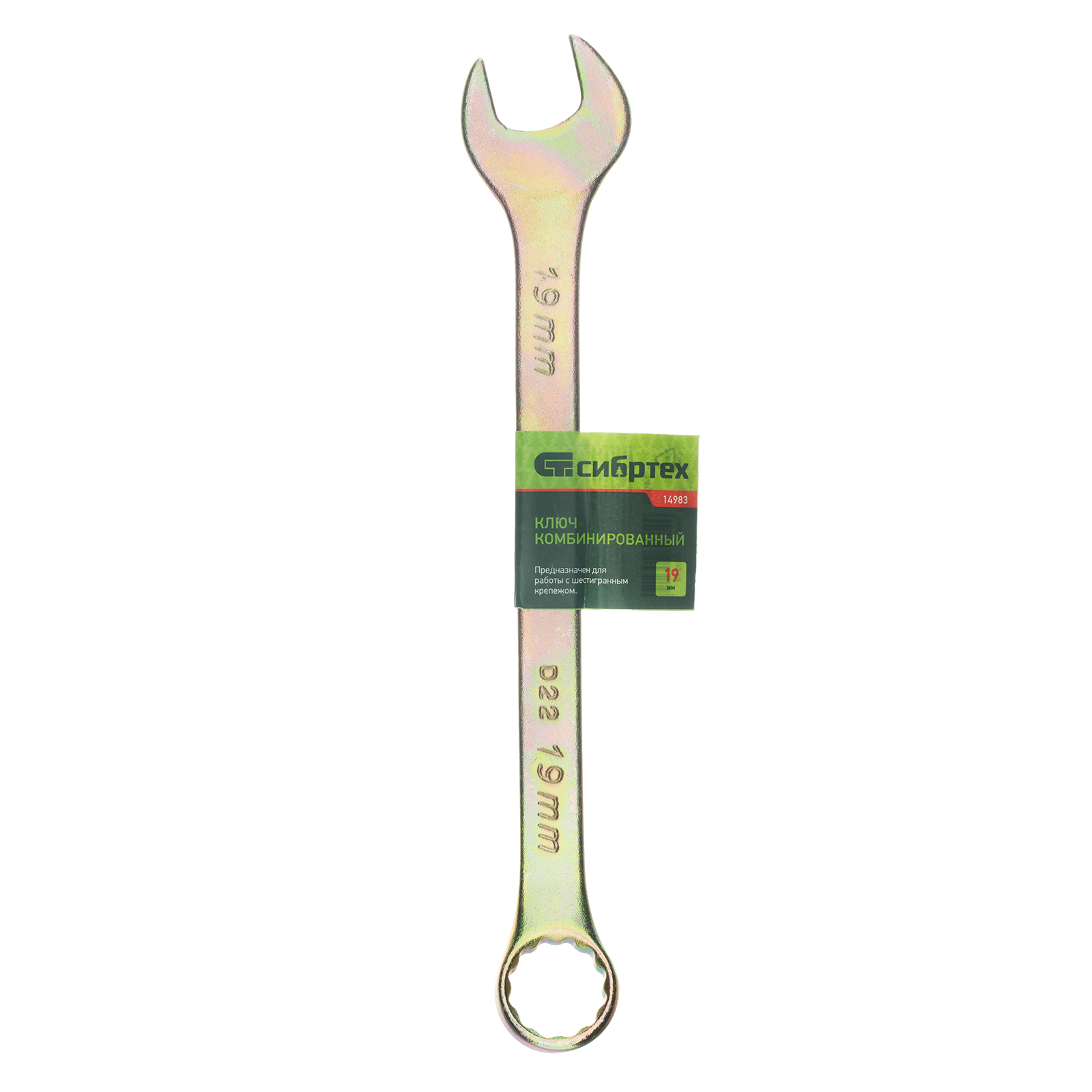 Ключ комбинированный, 19 мм, желтый цинк Сибртех
