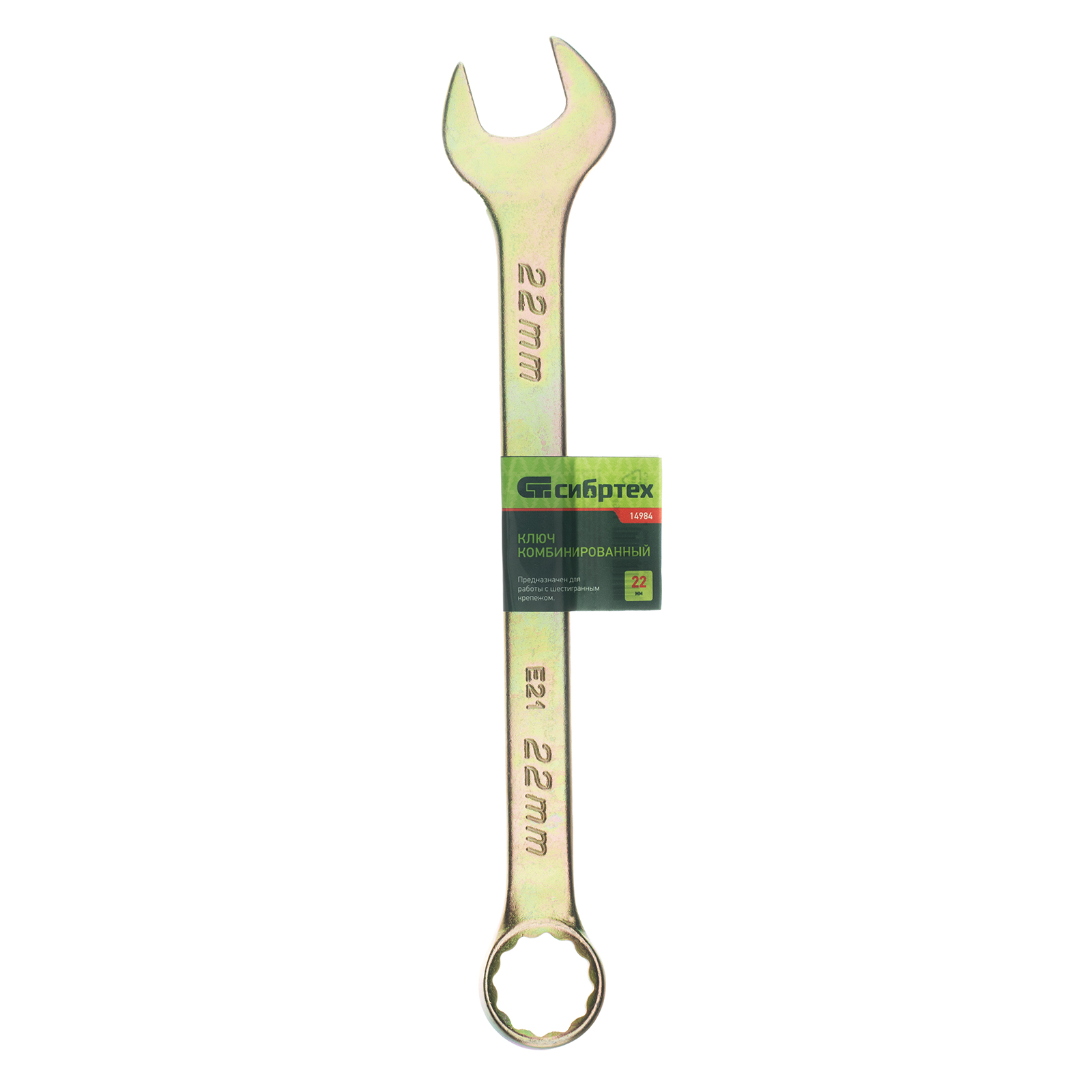 Ключ комбинированный, 22 мм, желтый цинк Сибртех