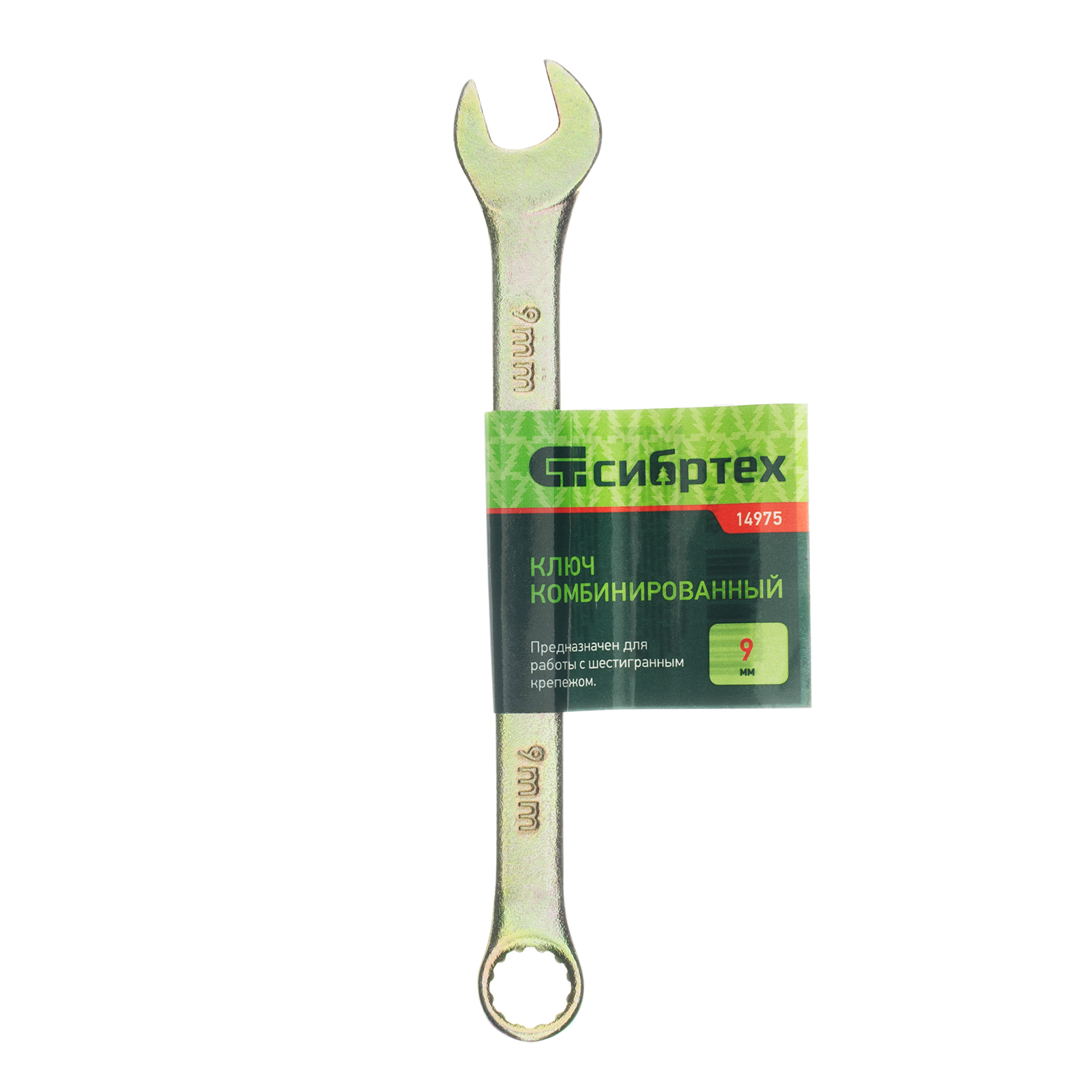 Ключ комбинированный, 9 мм, желтый цинк Сибртех