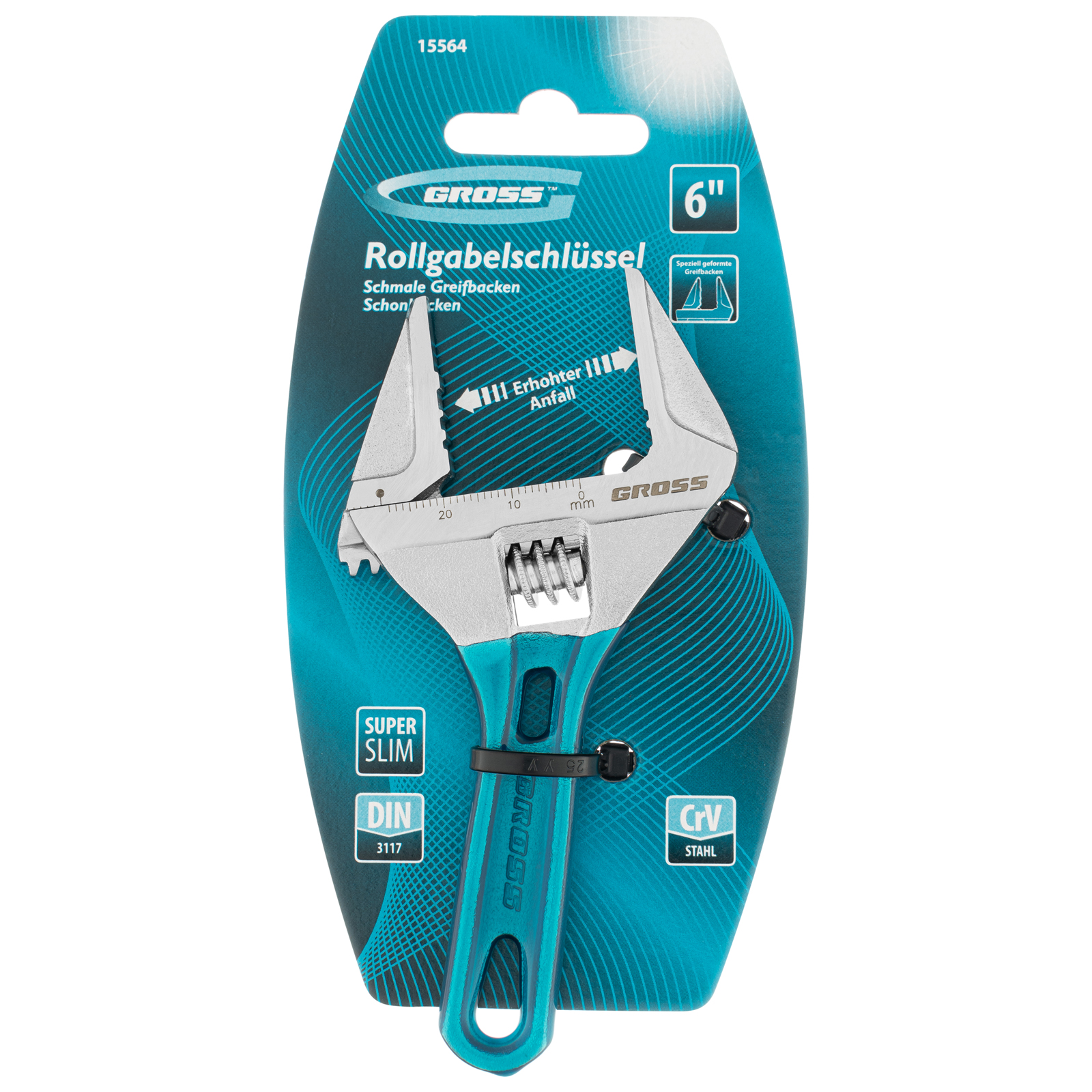 Разводной ключ Gross 15564 длиной 120 мм, из стали CrV, с укороченной ручкой и диапазоном раскрытия зева до 28 мм, подходит для работы как с мелкими, так и с крупными крепежными элементами. Губки раскрываются на 50% больше, чем у стандартных ключей. Ребристая рабочая поверхность губок обеспечивает надежный захват деталей и повышает точность работы.