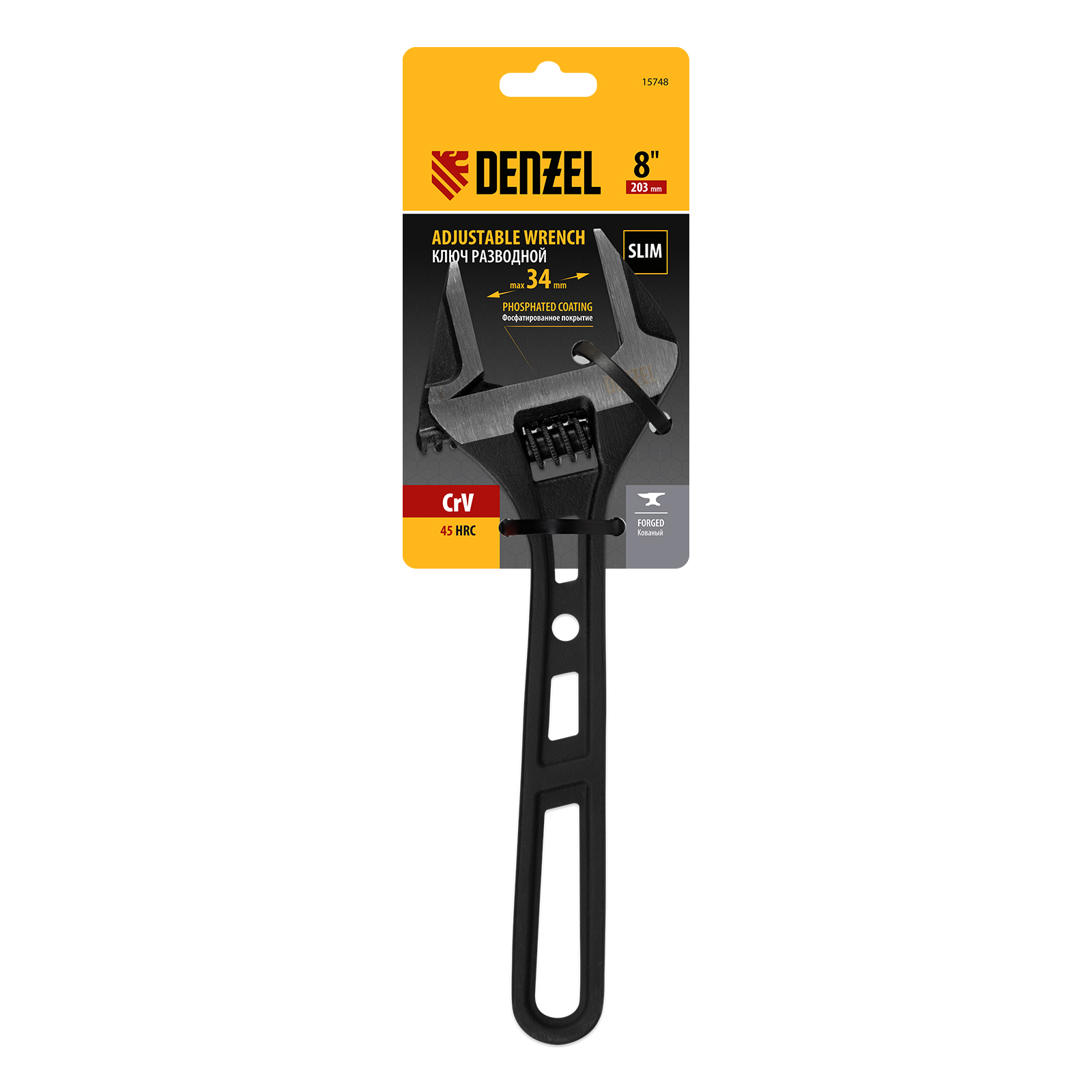 Ключ разводной, 200 мм, CrV, кованый Denzel