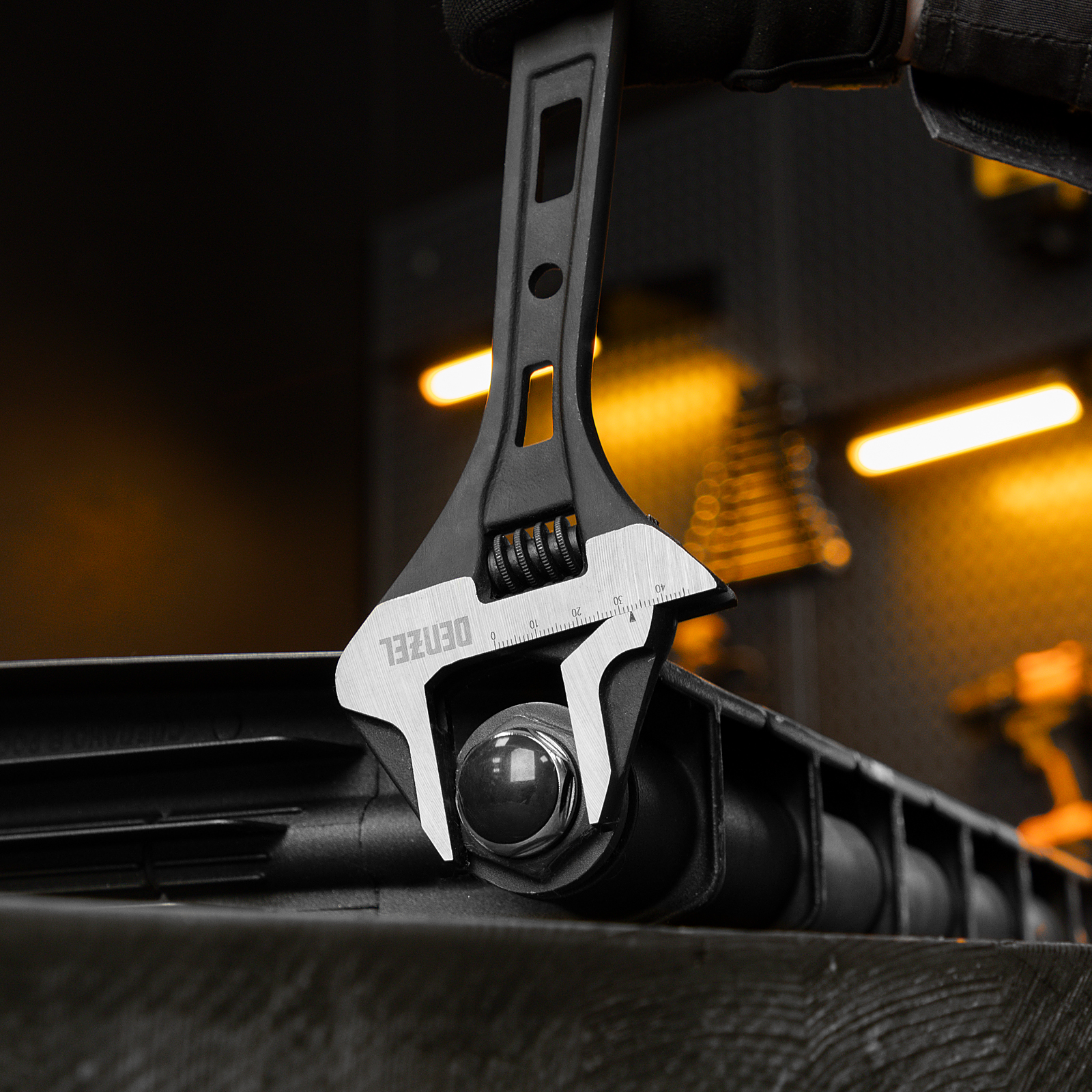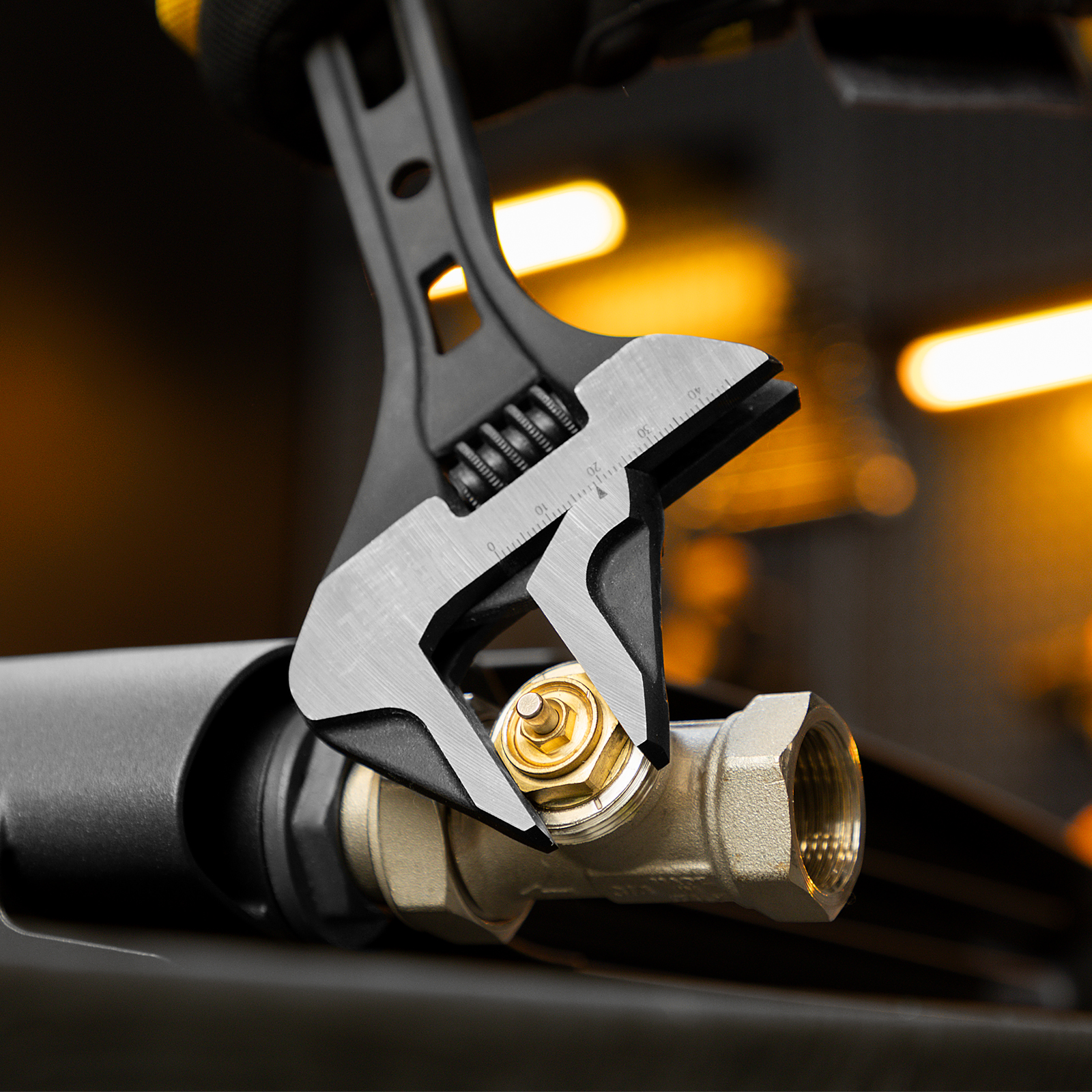 - Удобная эксплуатация — метрическая линейка на ключе помогает выставить нужный размах зева.