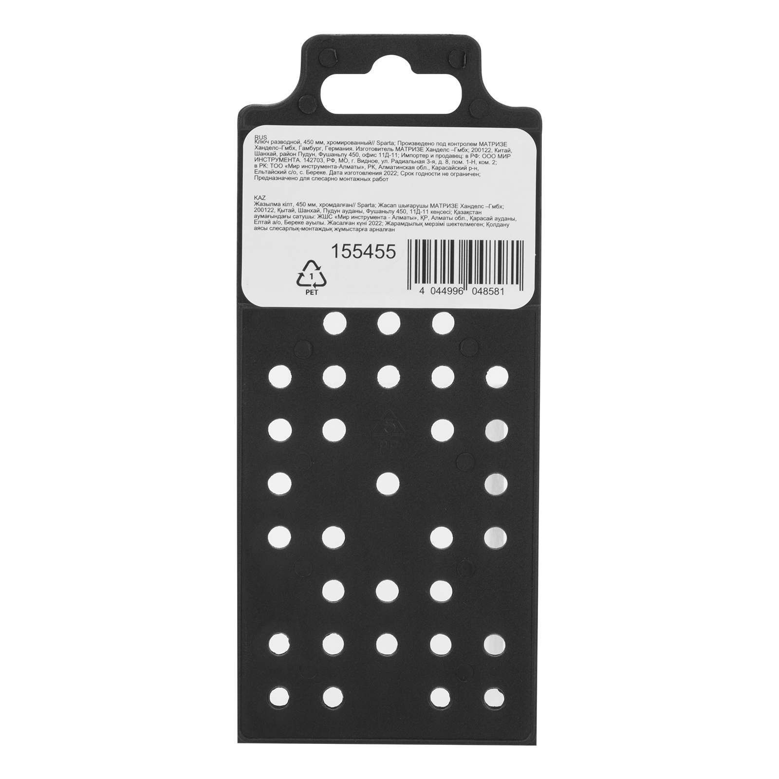 Хромированный разводной ключ Sparta 155455 длиной 450 мм — инструмент для выполнения мелких ремонтных работ. Регулировка размера зева позволяет работать с различными крепежами, в том числе нестандартных размеров. Ключ пригодится слесарям, сантехникам, автомеханикам и начинающим мастерам.