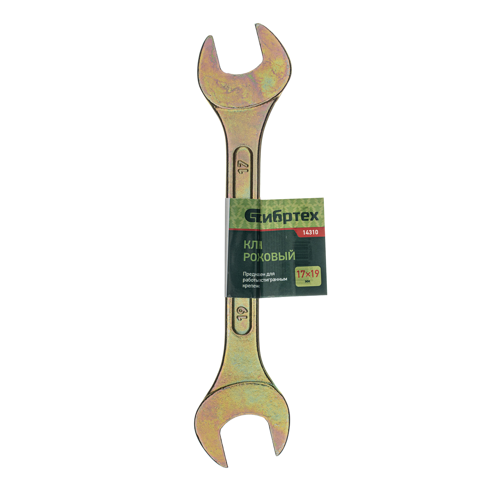 Ключ рожковый, 17 х 19 мм, желтый цинк Сибртех