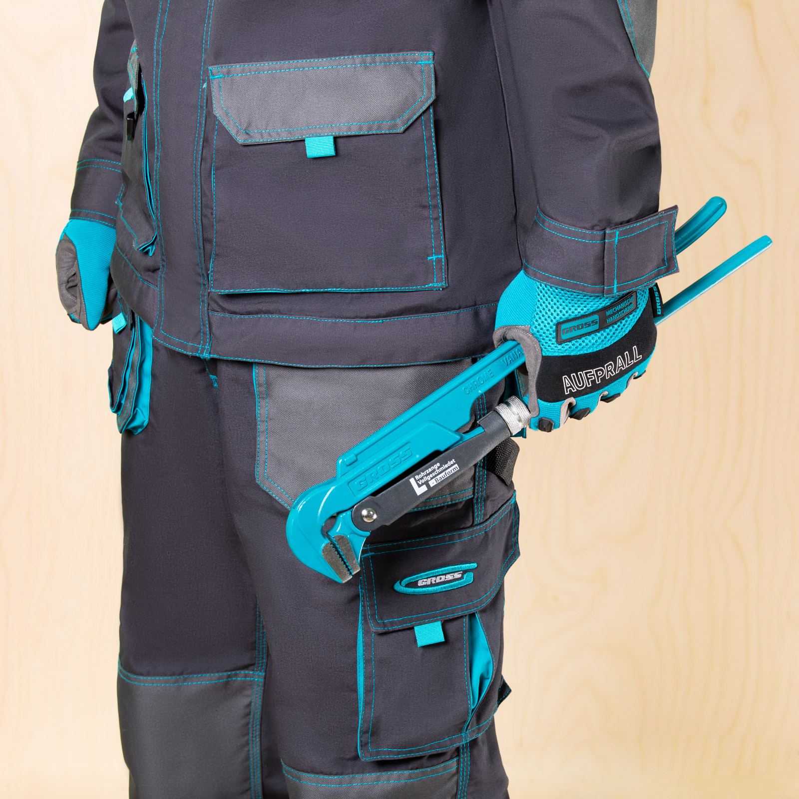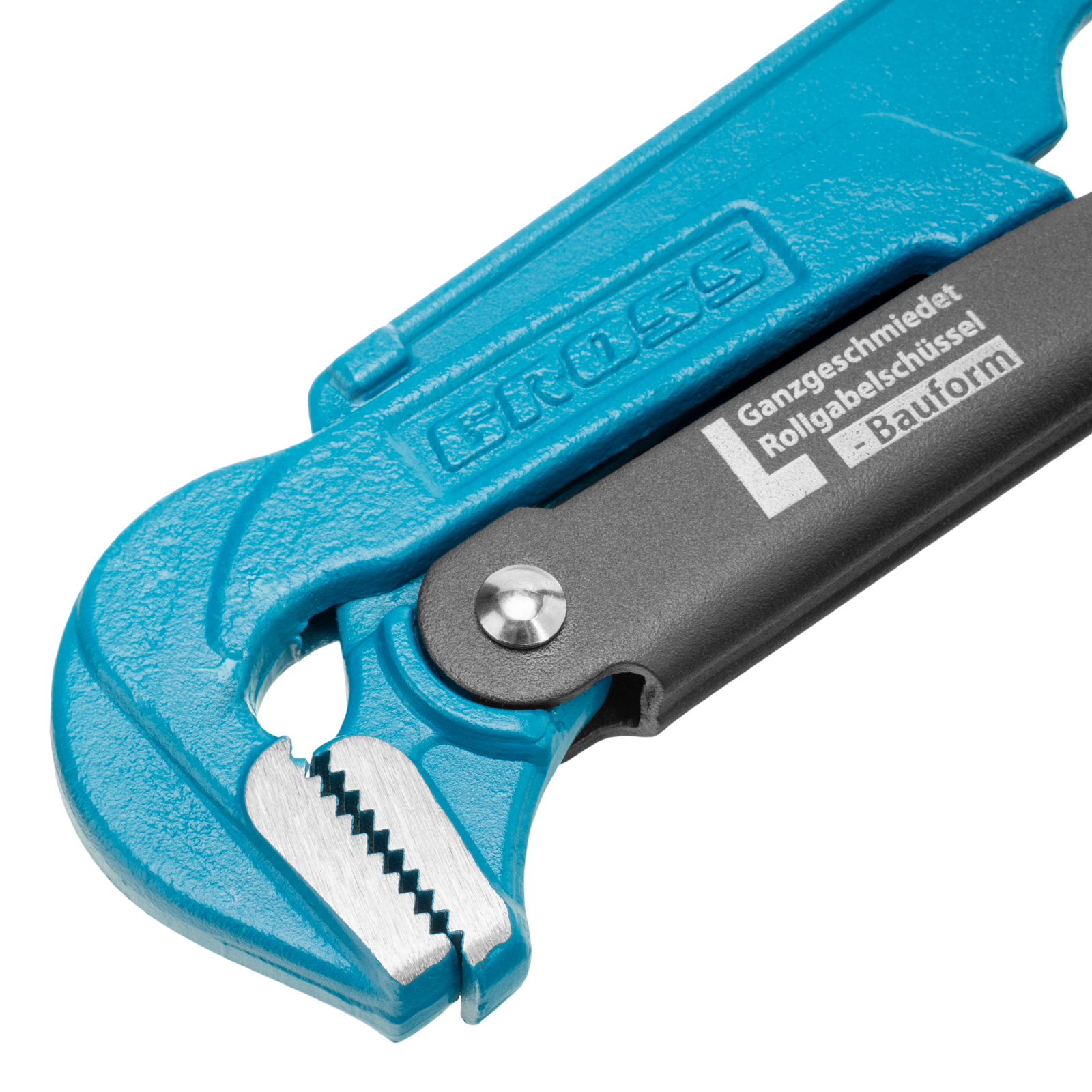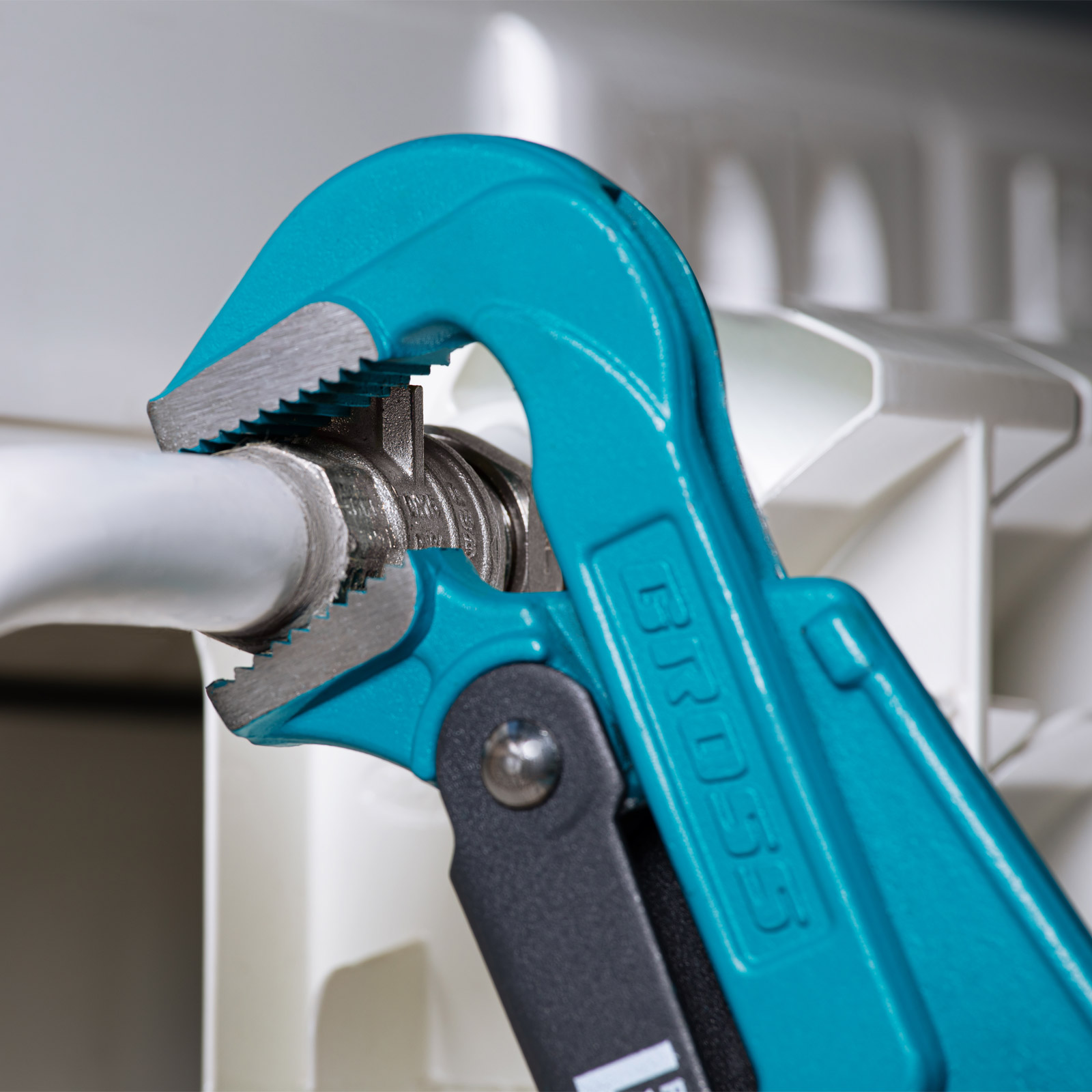 - Самоблокируемый захват труб и деталей — зубья прогрессивной формы наклонены против направления вращения.