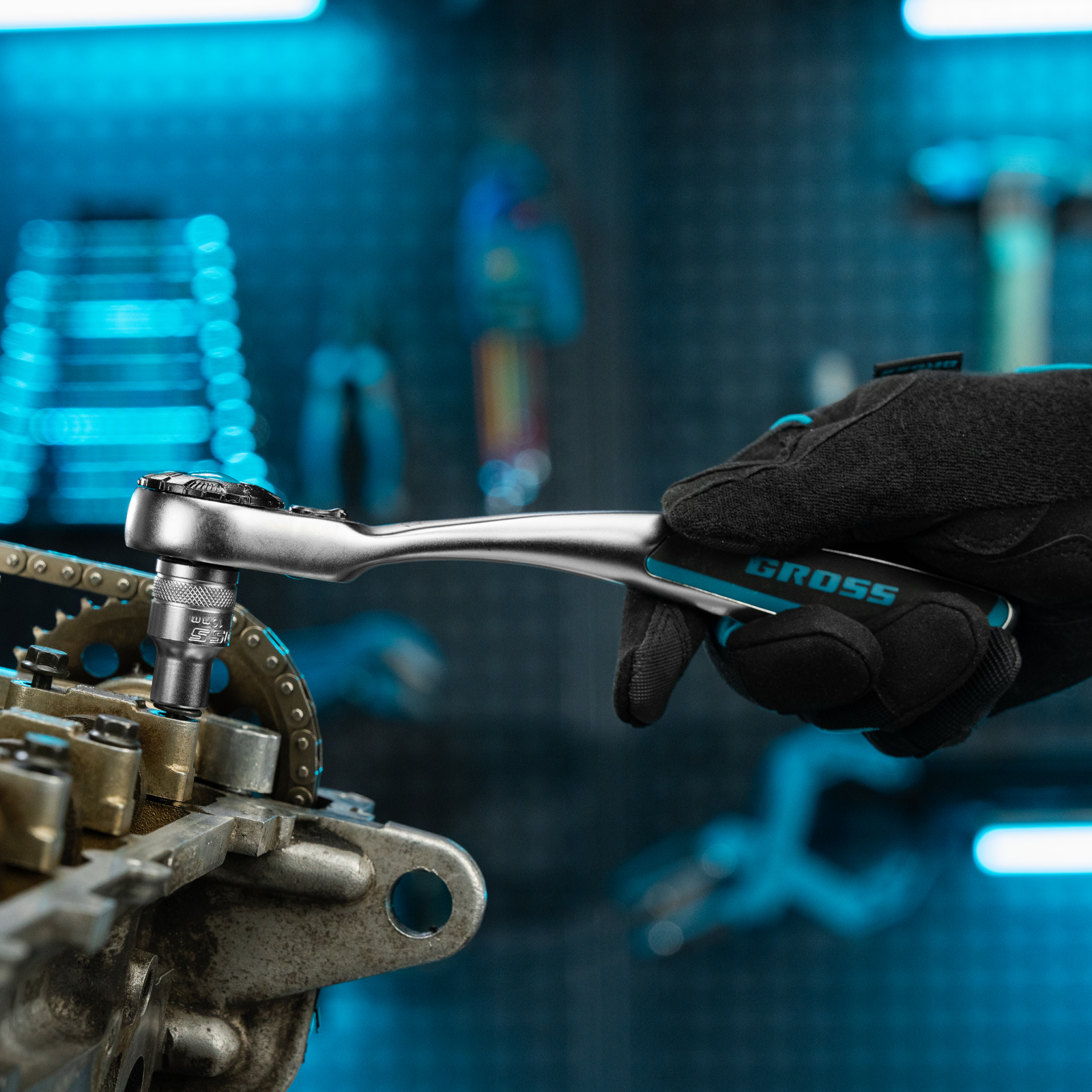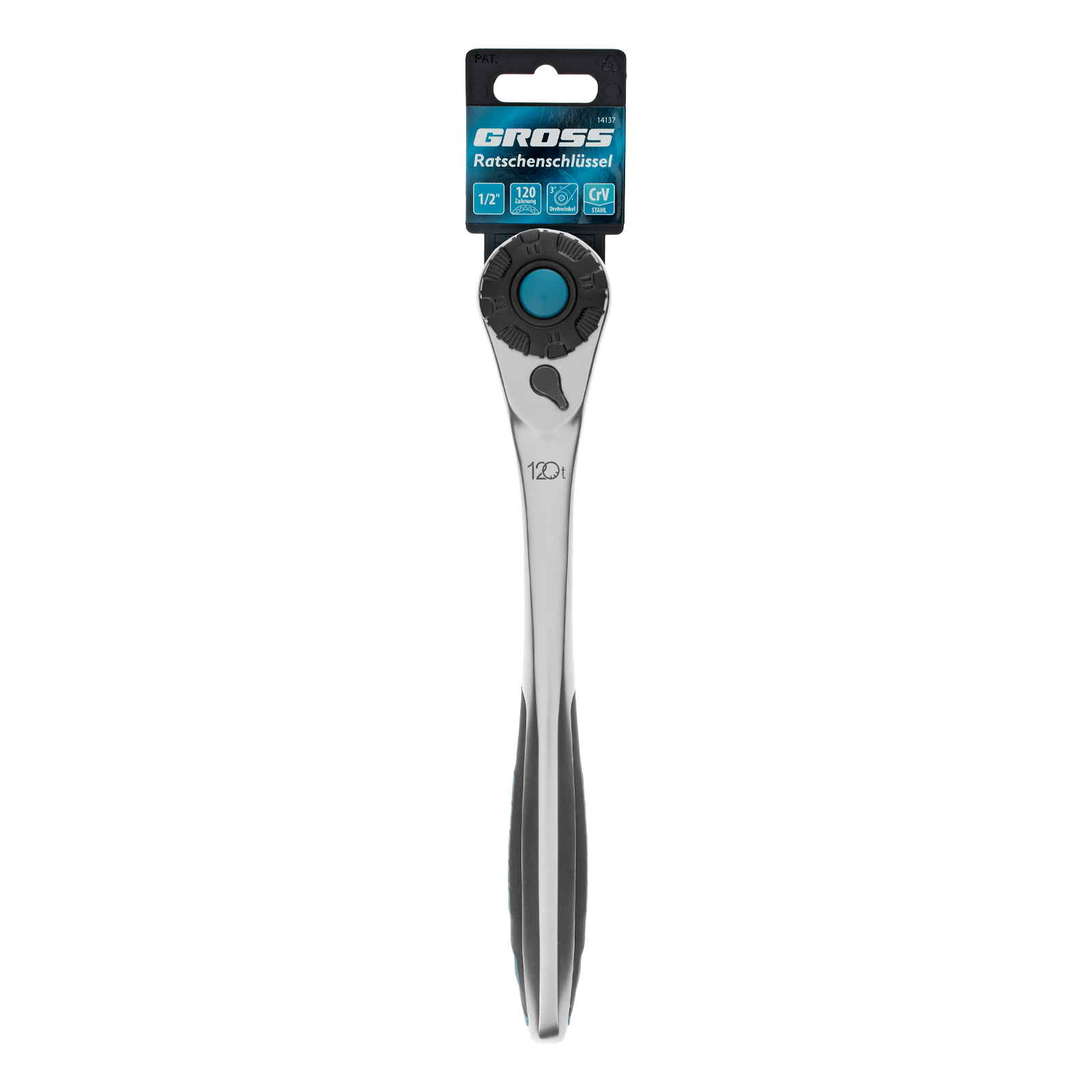 Ключ-трещотка 1/2", CrV, 120 зубьев, с быстрым сбросом, цельнометаллический, хром Gross в Санкт-Петербурге