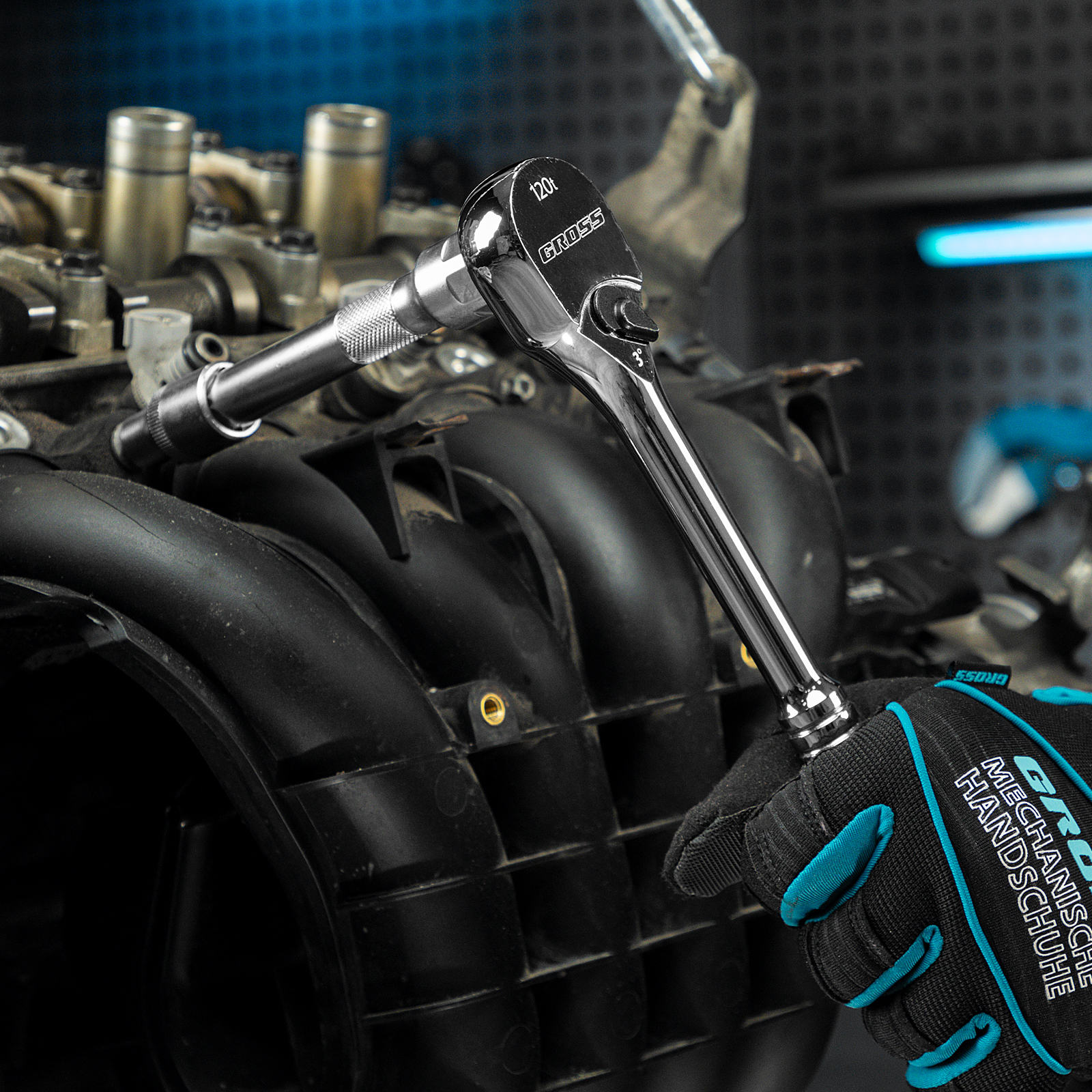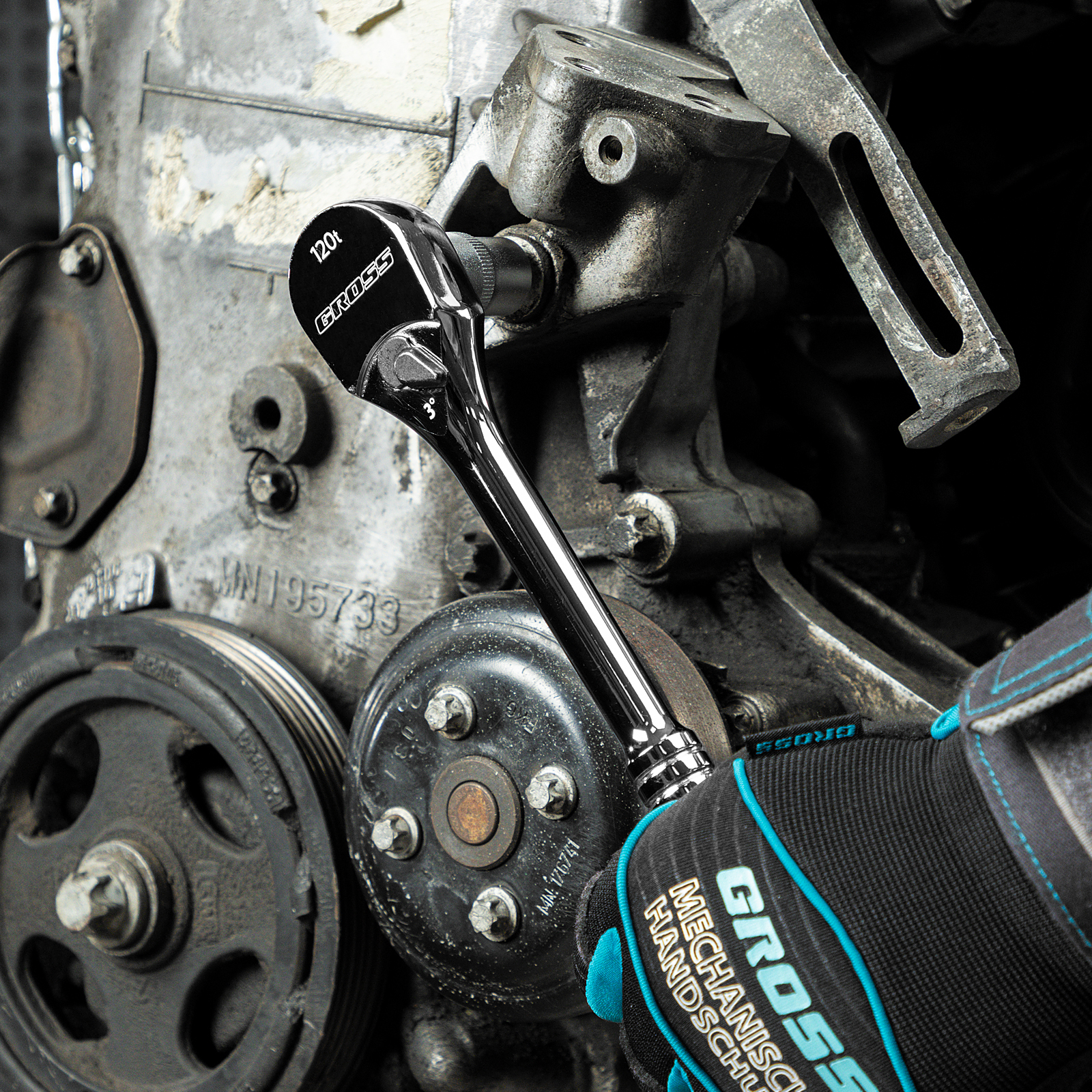 Ключ-трещотка 1/2", CrV, 120 зубьев, цельнометаллический, хром Gross
