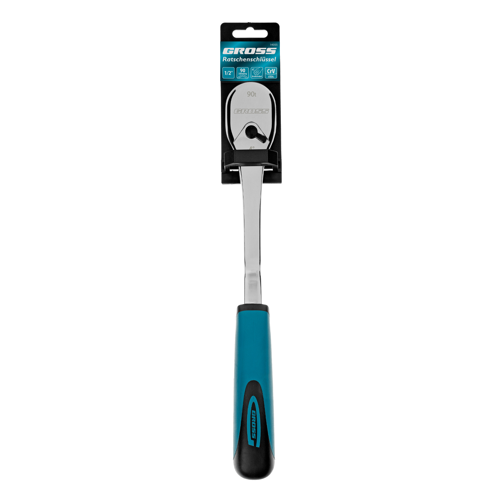 Ключ-трещотка 1/2", CrV, 90 зубьев, усиленный, хром Gross
