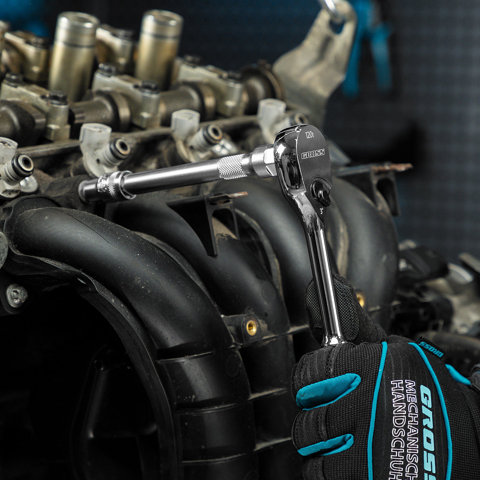 Ключ-трещотка 3/8", CrV, 120 зубьев, цельнометаллический, хром Gross