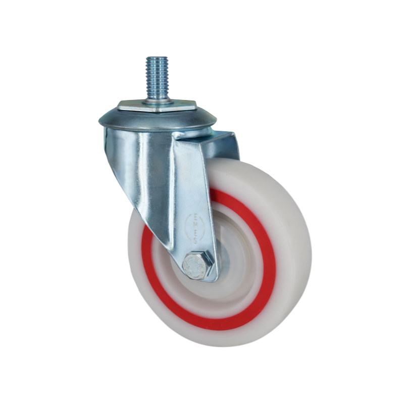 Данная колесная опора отличается высокой устойчивостью к повреждениям и износу. Контактный слой выполнен из полипропилена — легкого, прочного и долговечного материала. Дополнительная прослойка из TPR (термопластичной резины) гарантирует мягкий и бесшумный ход. Кронштейн оцинкован для защиты от коррозии. Шариковый подшипник, расположенный в оси, обеспечивает плавное вращение и минимальные усилия при движении. Грузоподъемность EM05MBTM125 составляет 160 кг, диаметр — 125 мм. Модель идеально подходит для тележек в супермаркетах и другого передвижного оборудования, используемого в торговле.
