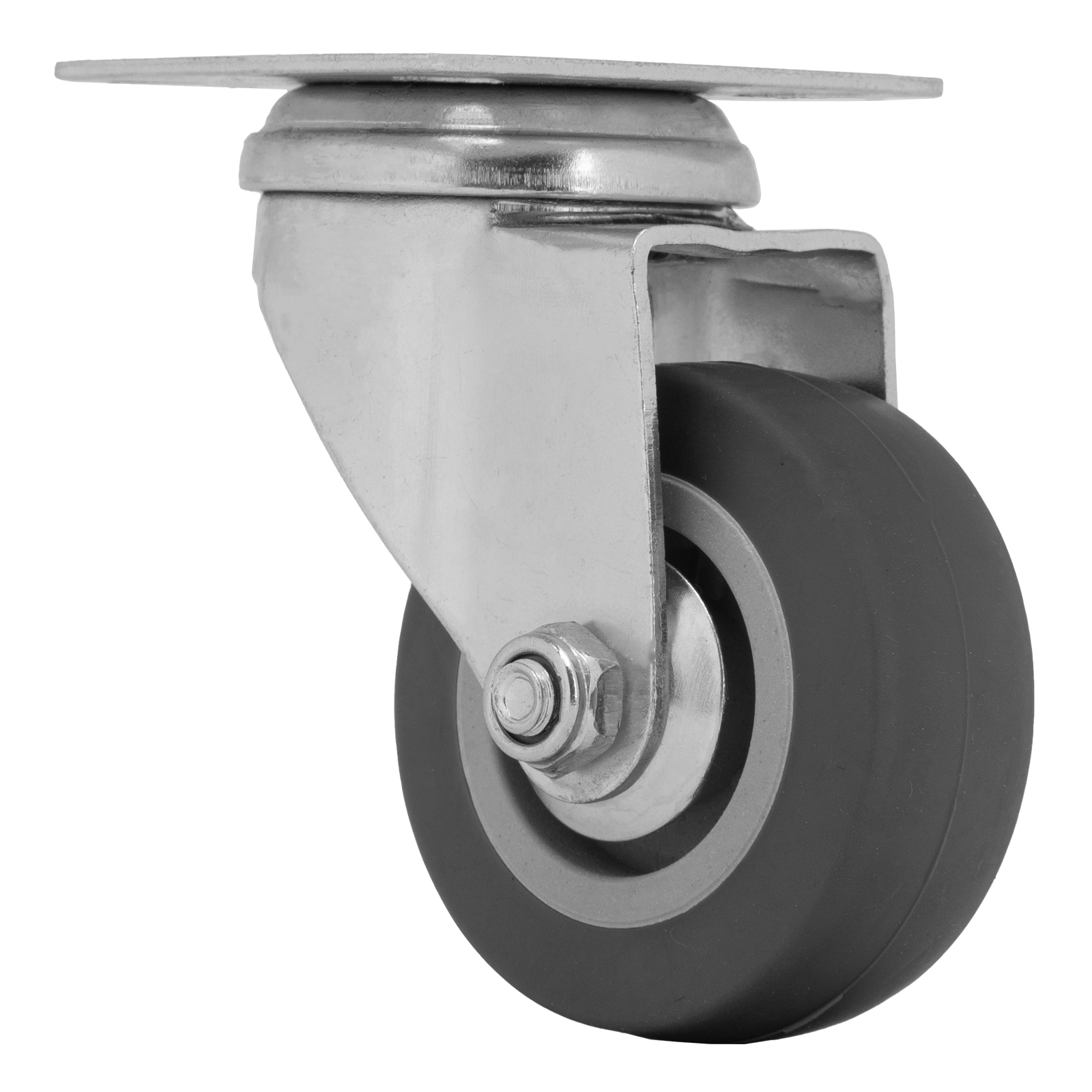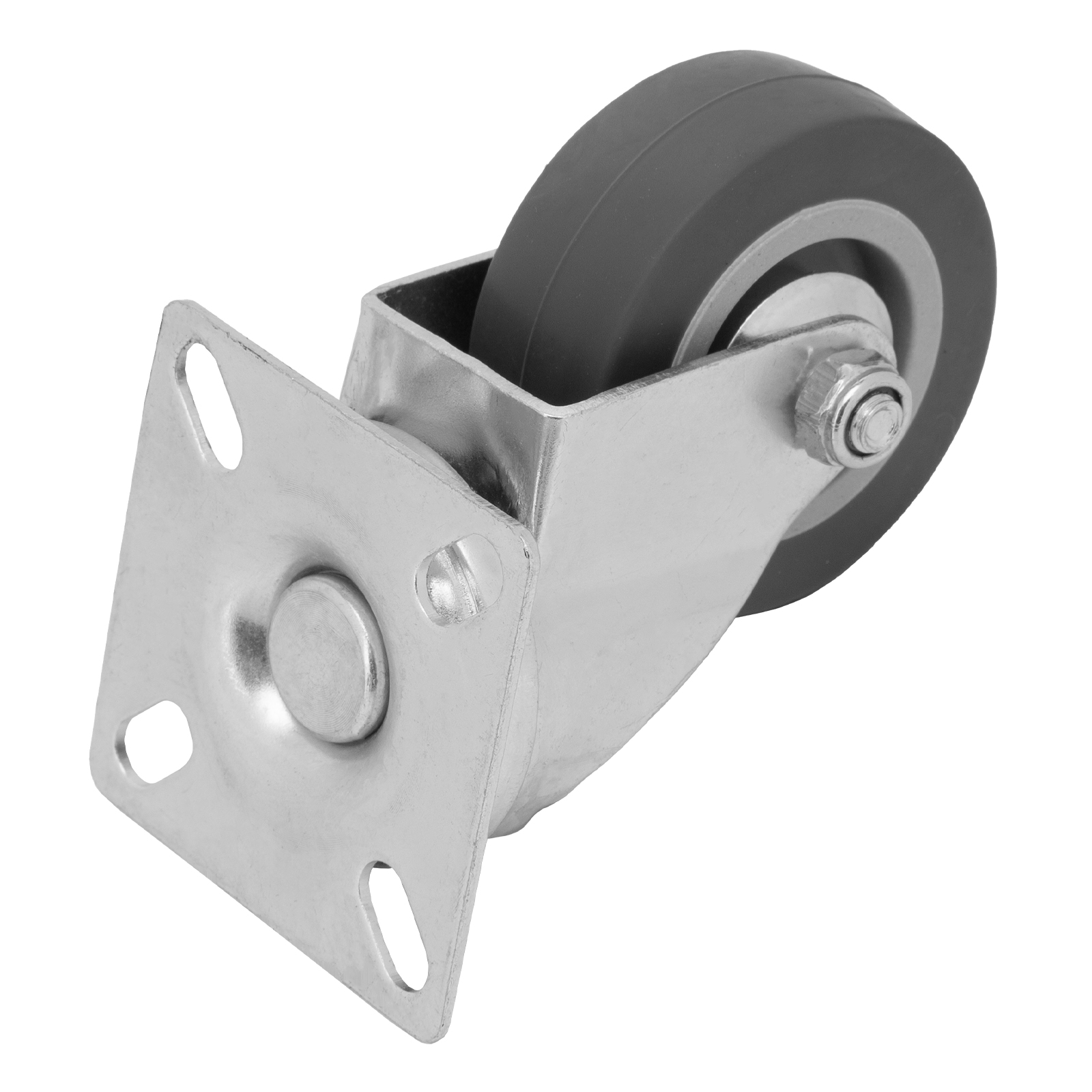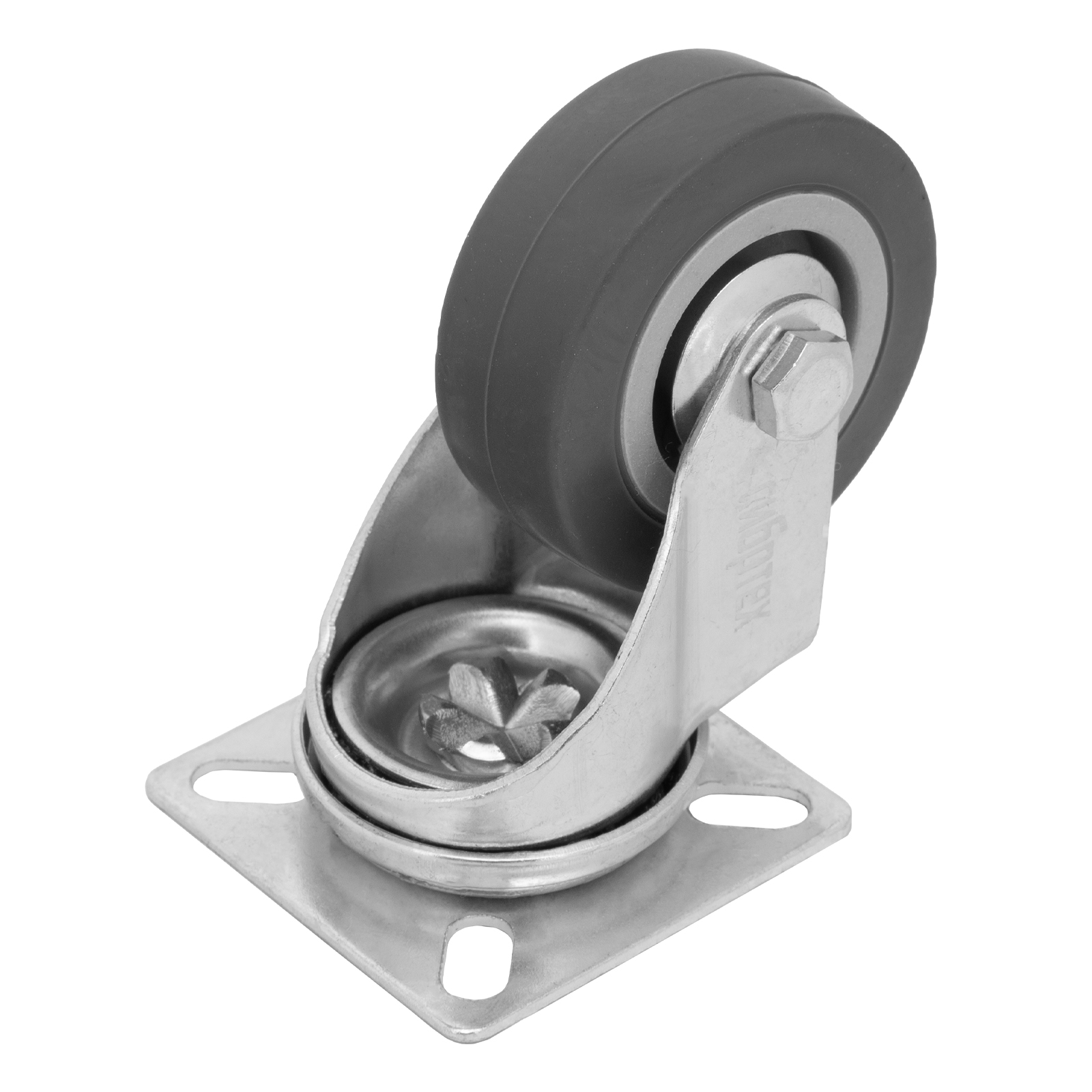 Колесо поворотное Сибртех 68713 диаметром 50 мм, с платформенным креплением, имеет грузоподъемность 35 кг и устанавливается на ручные промышленные тележки. Выдерживает температуру от -25 до +50 °C, устойчиво к воздействию ультрафиолета и влаги, поэтому подходит для эксплуатации как внутри помещения, так и снаружи. Поворотный механизм облегчает маневрирование. Колесо используется для перемещения грузов на производстве или на складах.