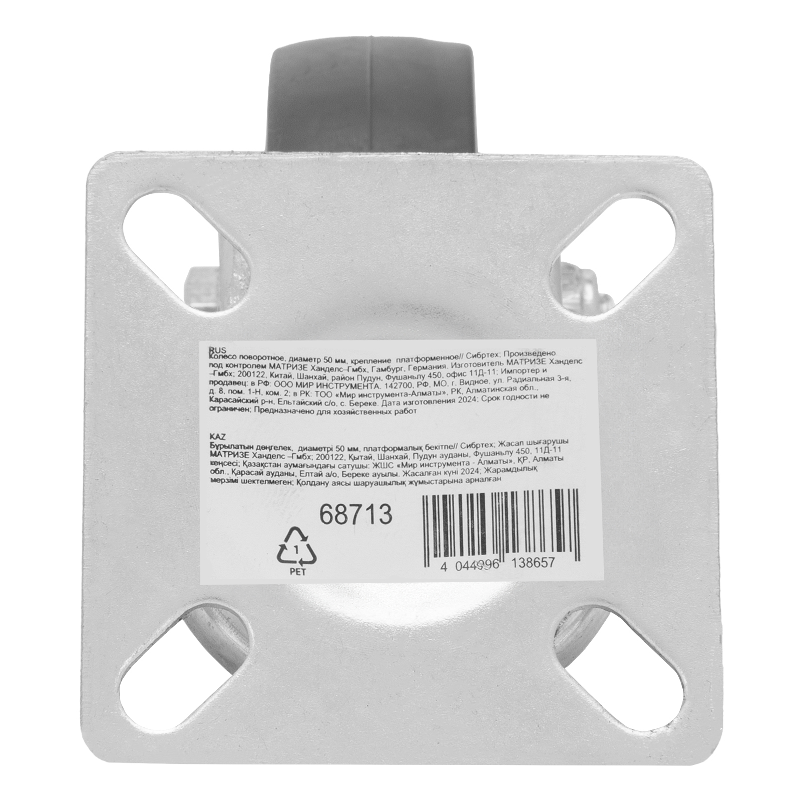 Колесо поворотное D 50 мм, крепление платформенное Сибртех в Санкт-Петербурге