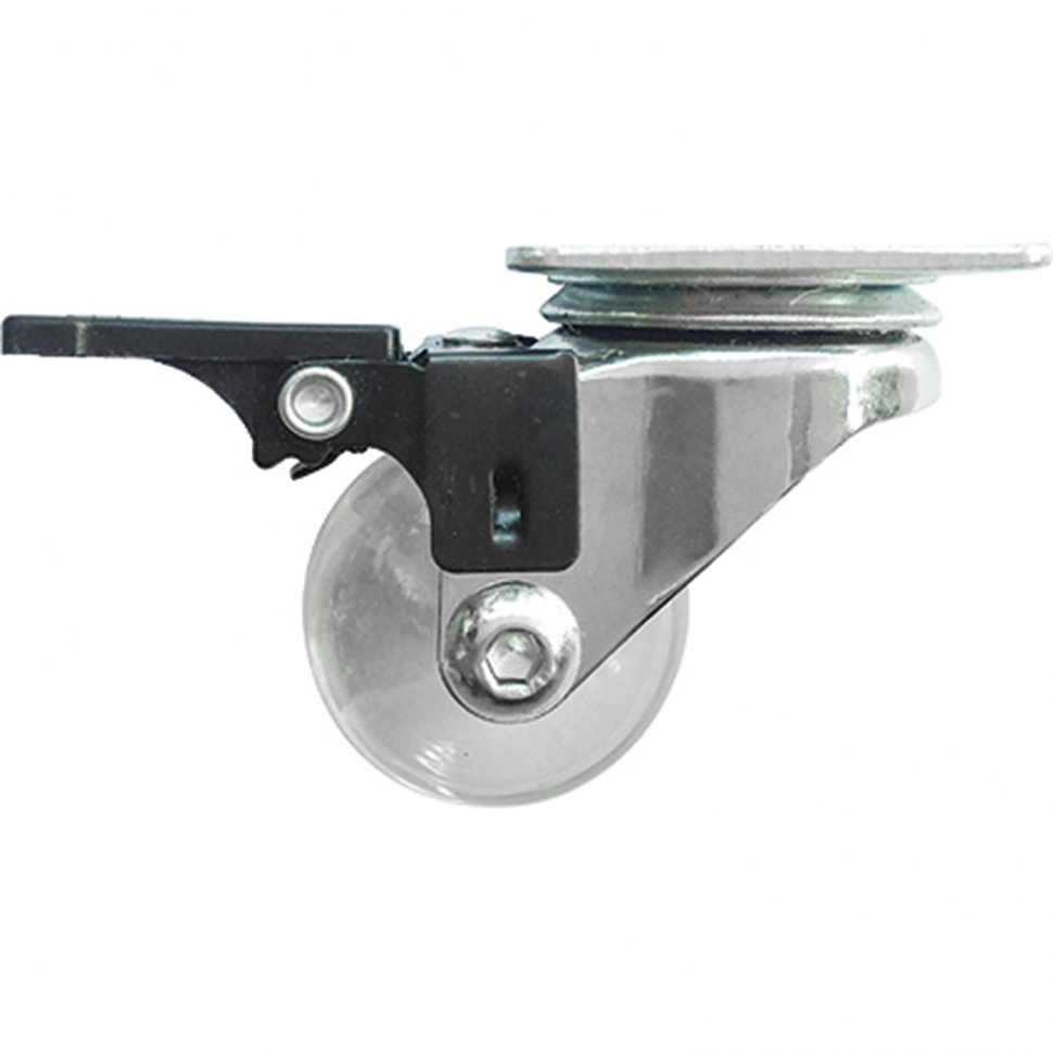 Колесо ПУ прозрачное поворотное с тормозом d-35 мм, крепление платформенное Сибртех в Санкт-Петербурге