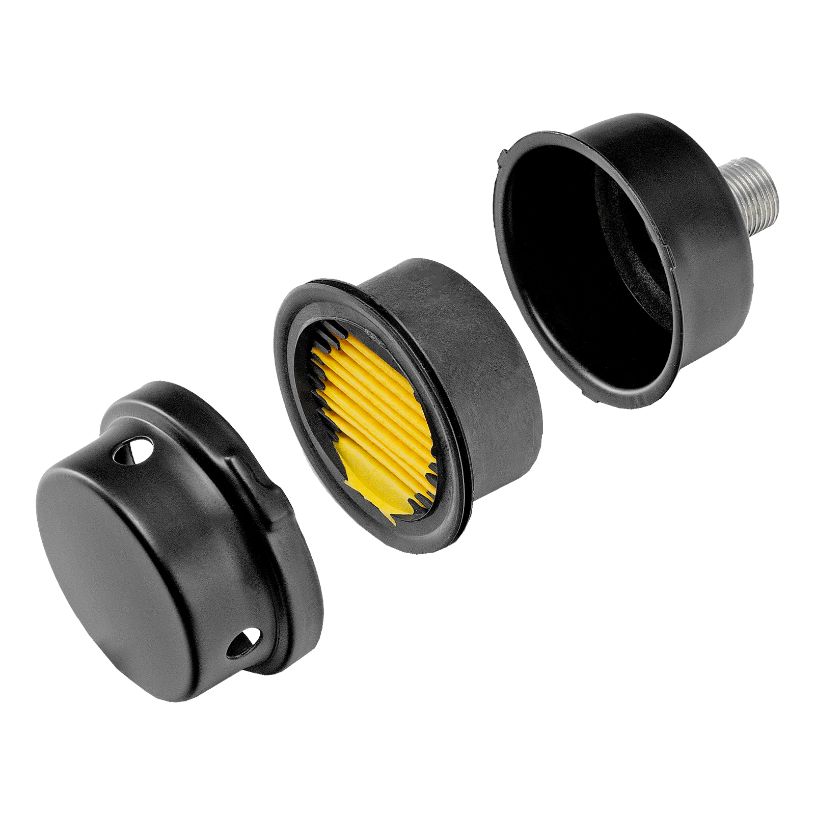 - Надежный воздушный фильтр минимизирует сопротивление потоку и не снижает производительность, а резиновый уплотнитель предотвращает попадание воздуха в ресивер в обход фильтра.