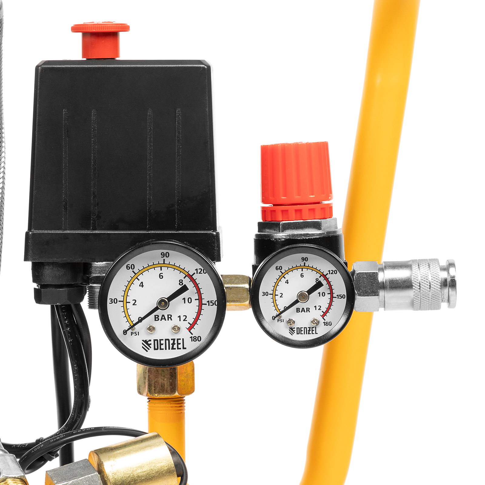 - Комфортно отслеживать параметры работы — 2 манометра позволяют контролировать давление в ресивере и пневмомагистрали, и при необходимости корректировать его.