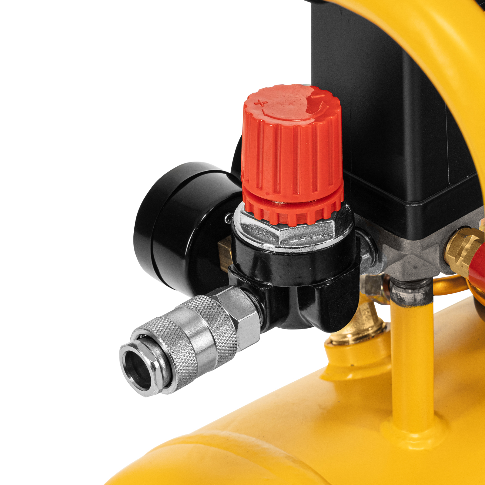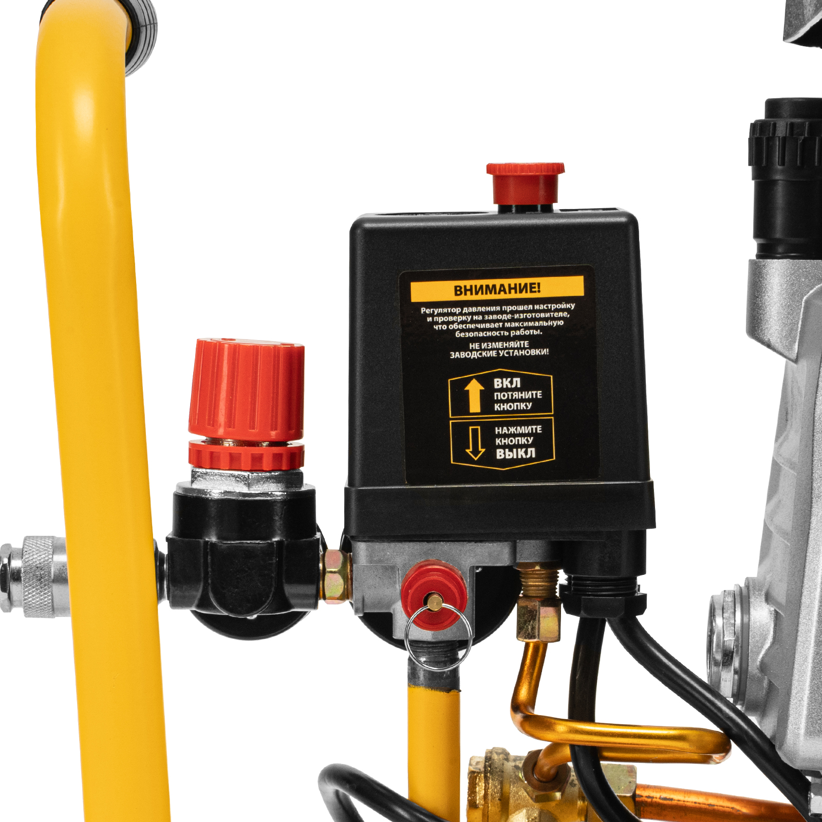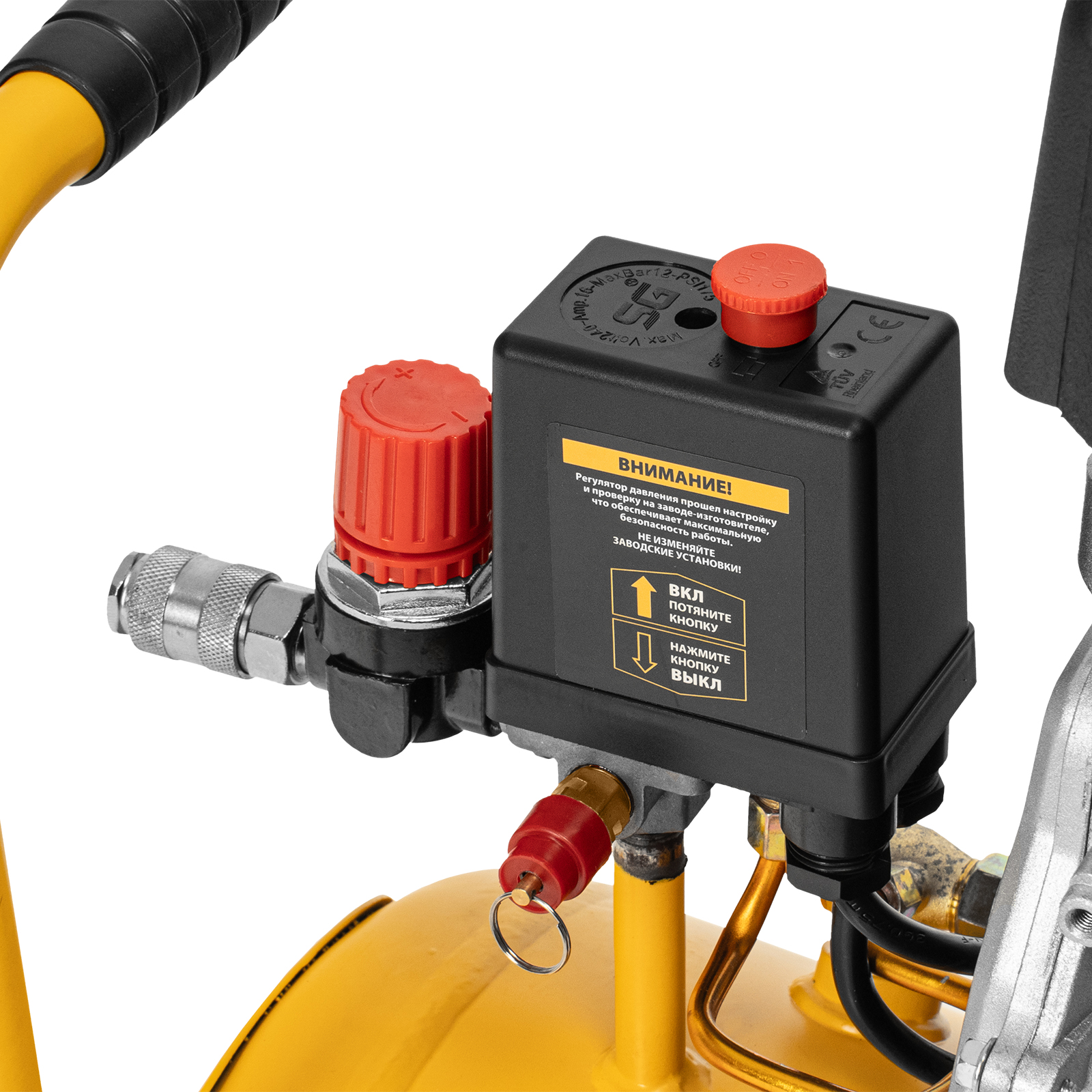 - Контроль рабочих параметров — давление в ресивере и выходной магистрали легко отслеживать благодаря 2 манометрам.