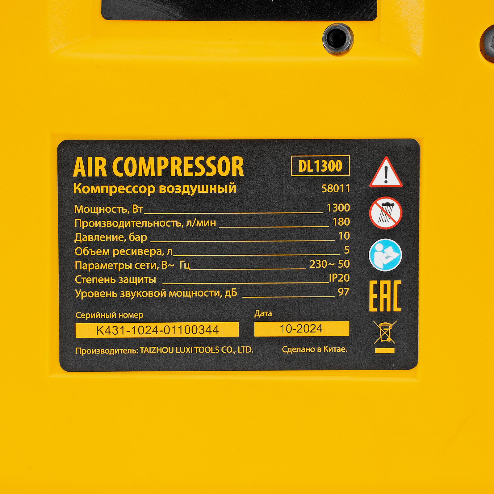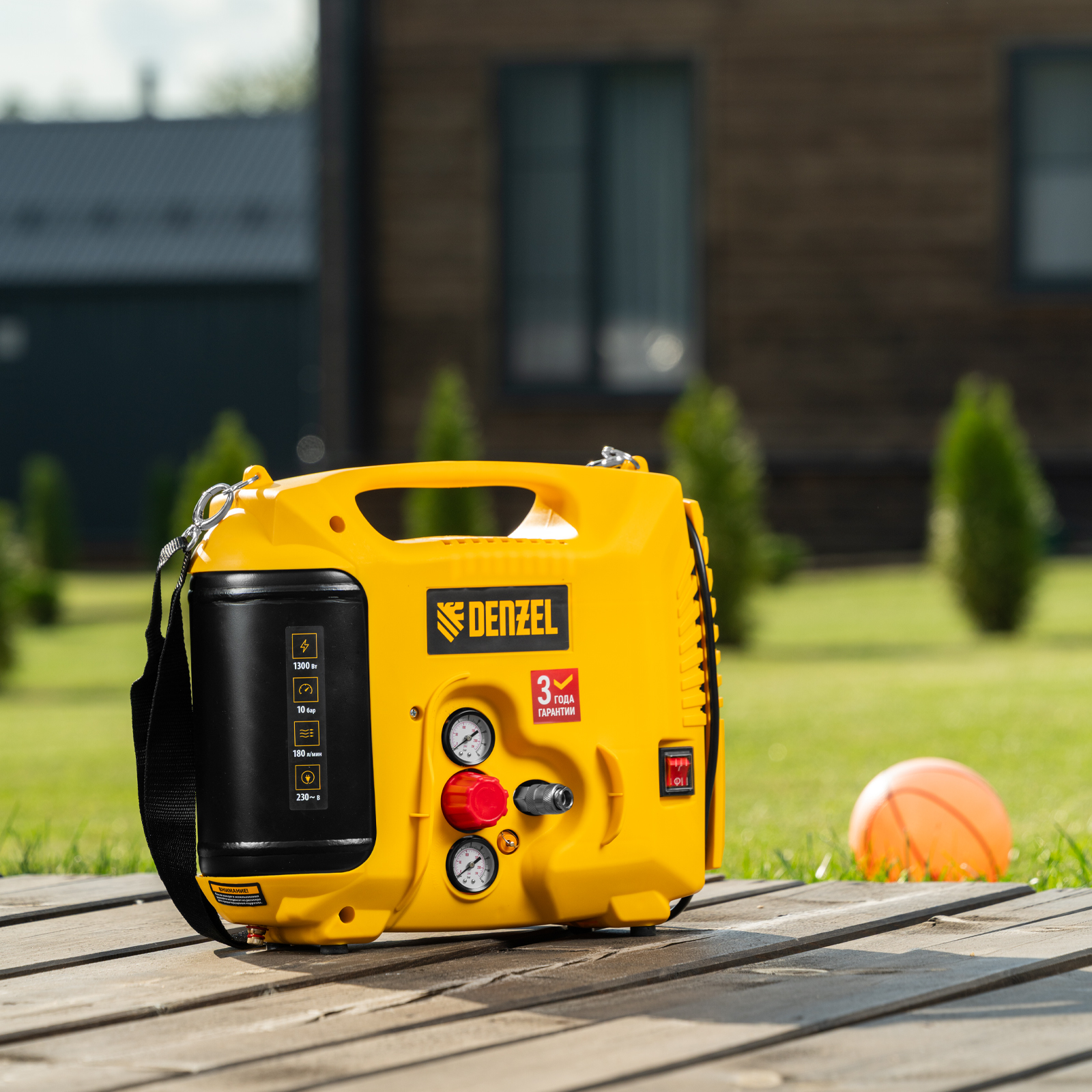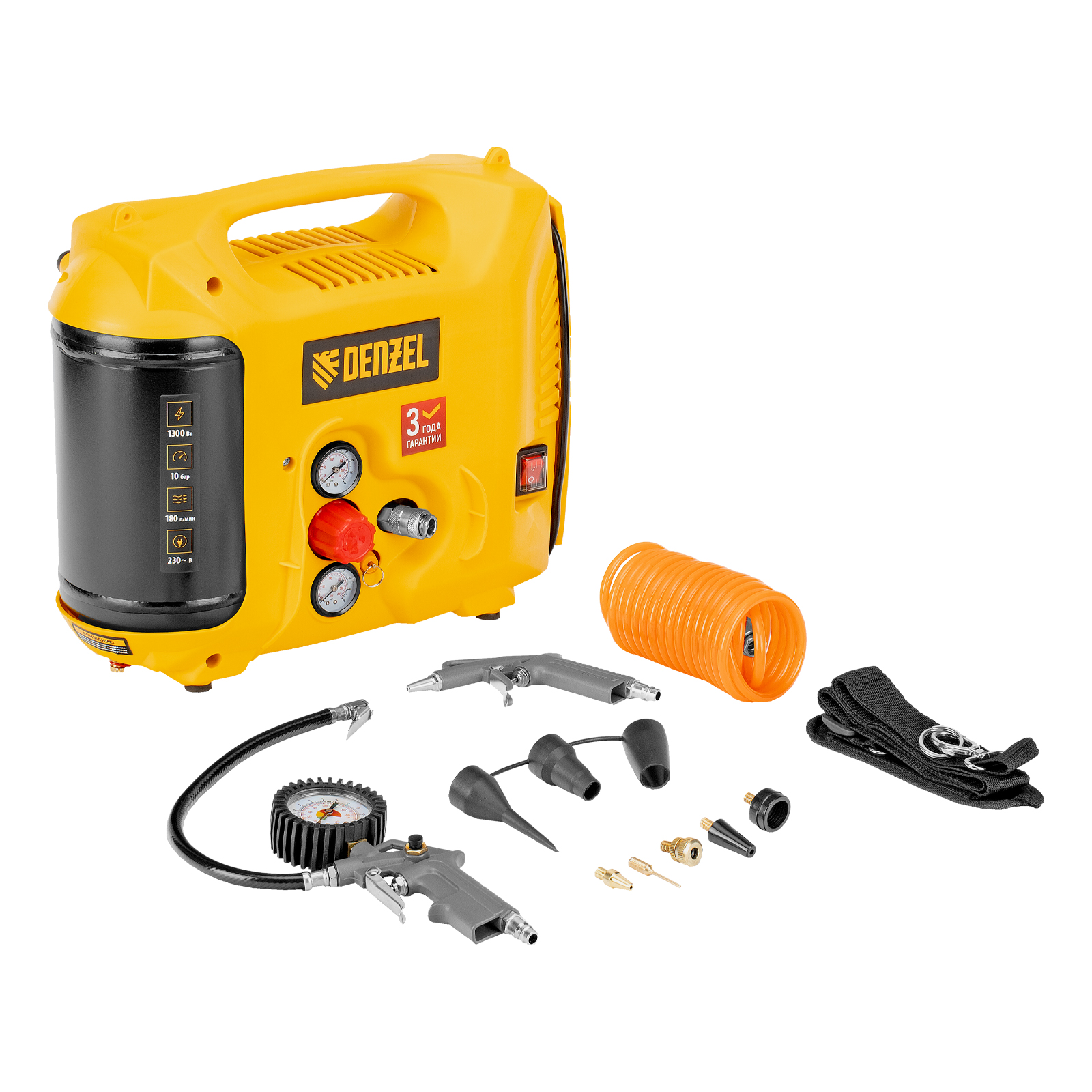 Компрессор воздушный DL1300, 10 бар, 1,3 кВт 180 л/мин 5 л, с набором аксессуаров Denzel в Санкт-Петербурге