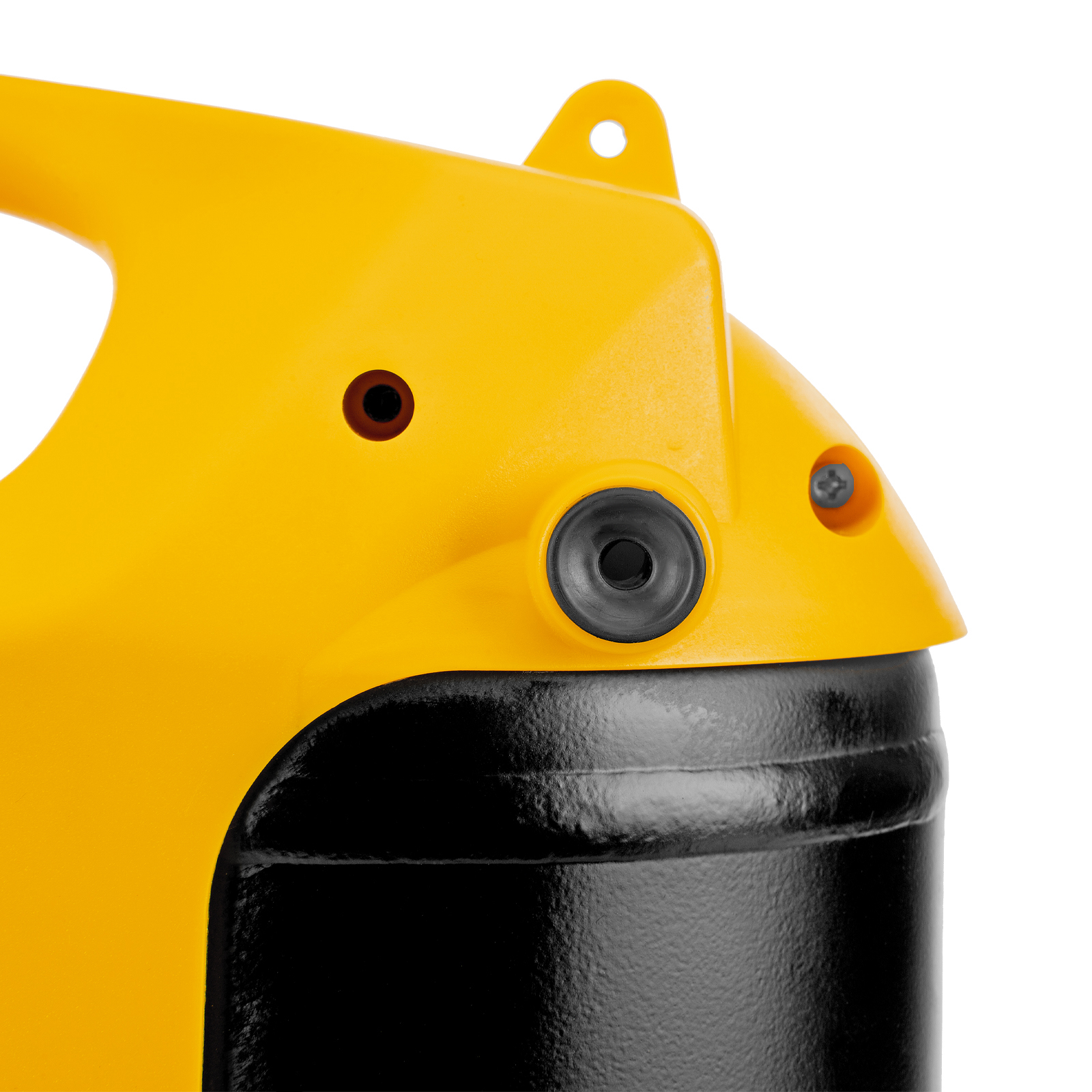 - Ресивер объемом 5 л — несмотря на портативное исполнение, устройство накапливает достаточный запас сжатого воздуха для бесперебойной работы.