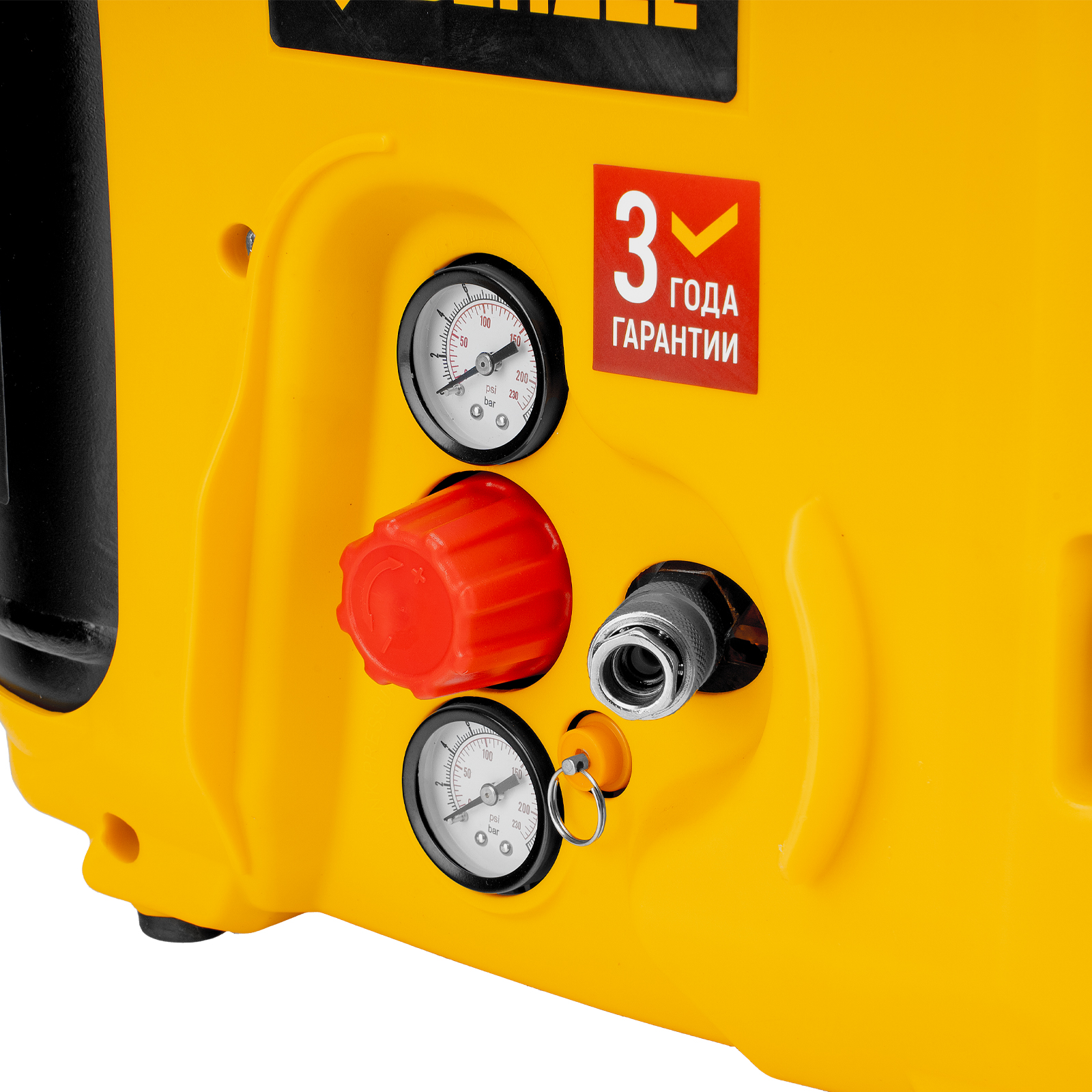 - Портативное исполнение — компрессор отличается компактными размерами 45 х 40 х 20 см и малым весом 9,85 кг, не занимает много места на рабочей площадке, удобно размещается в зоне хранения и транспортировки.