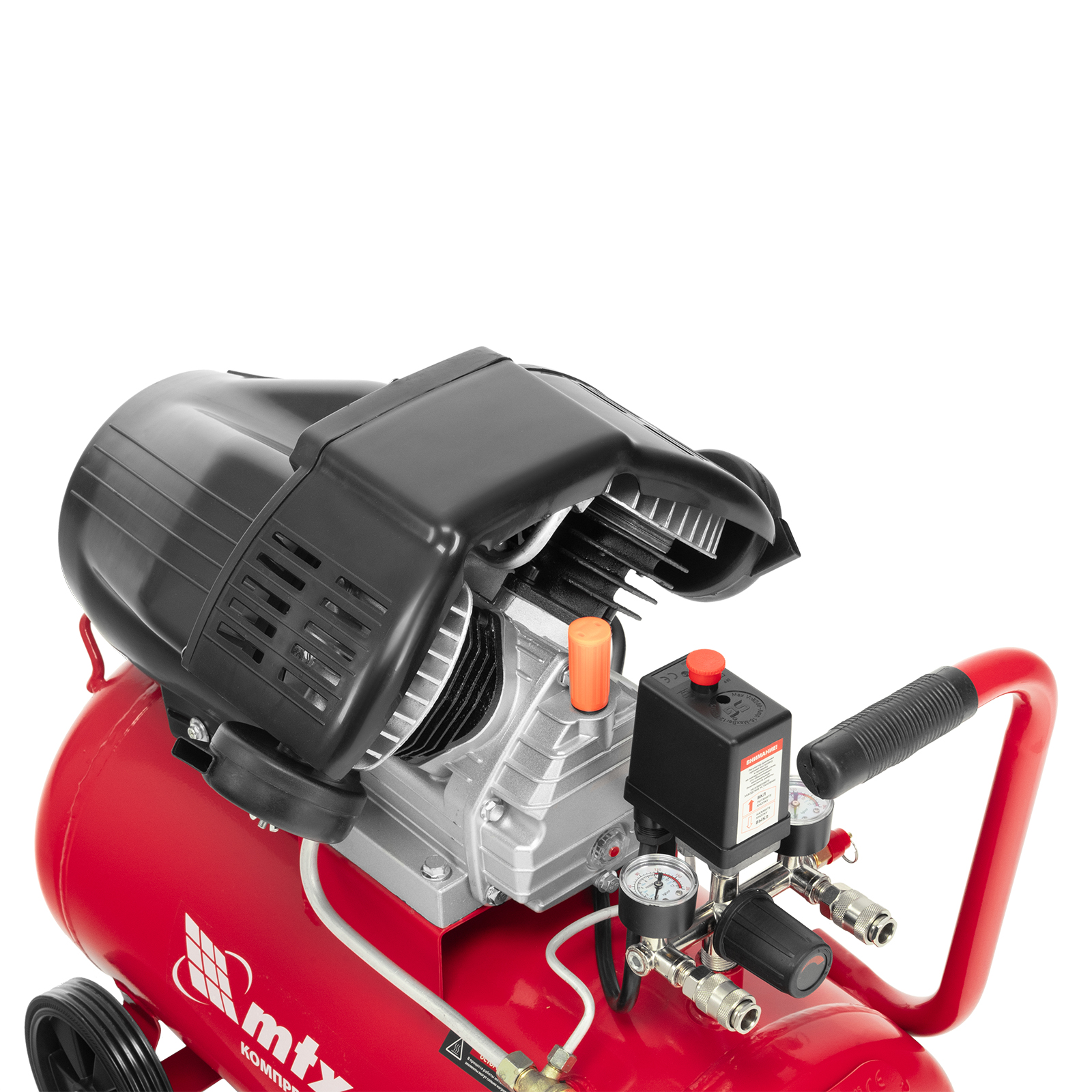 Компрессор воздушный масляный MTX KK-2200/50 58024 мощностью 2,2 кВт, с прямым приводом, оснащен ресивером объемом 50 л, обеспечивает производительность на уровне 350 л/мин и рассчитан на давление до 8 бар. Предназначен для обеспечения работоспособности пневматического инструмента: гайковерта, шлифовальной машины, шуруповерта, краскораспылителя или т.д. Мощный и производительный компрессор будет полезен на строительной площадке, в гараже, на предприятии автосервиса.