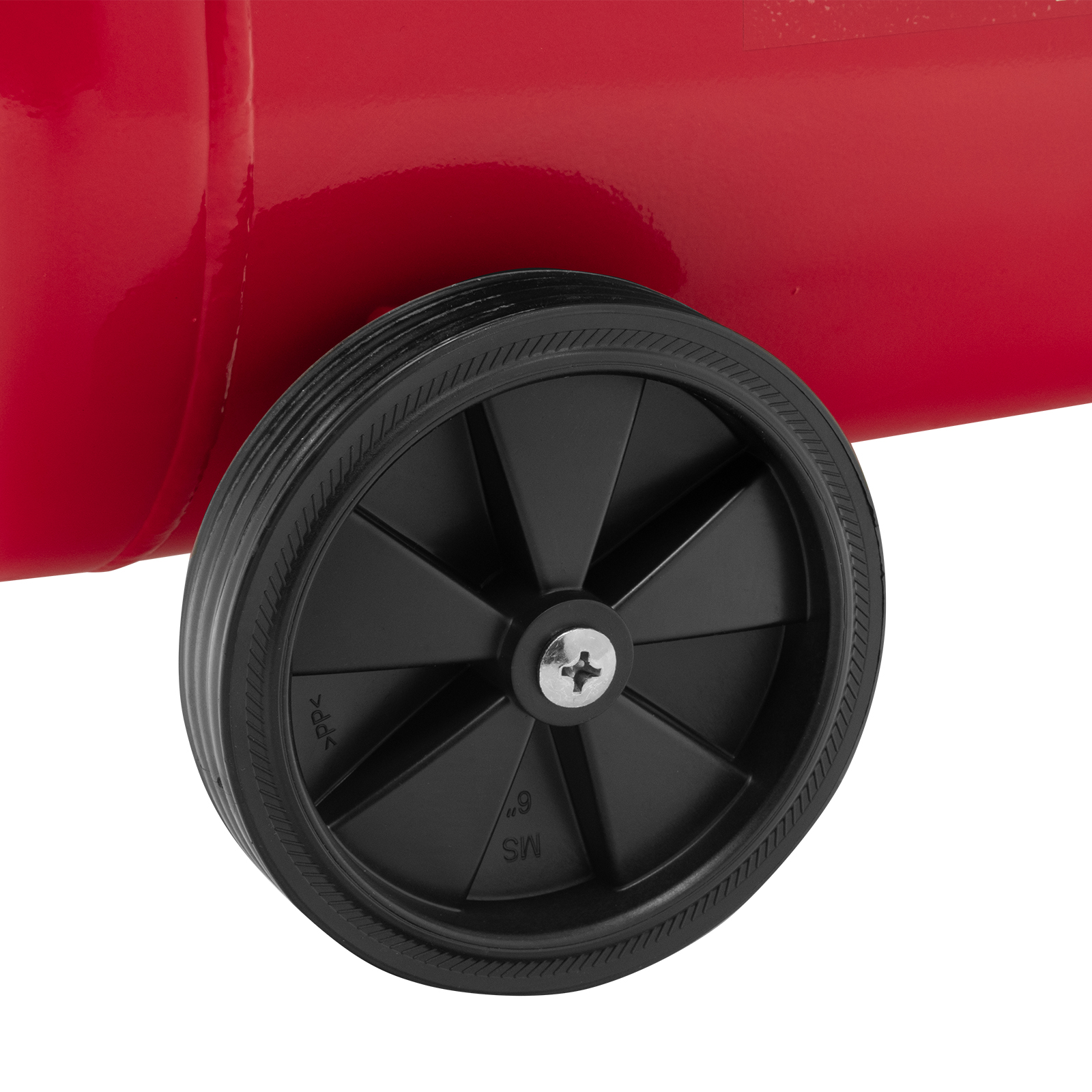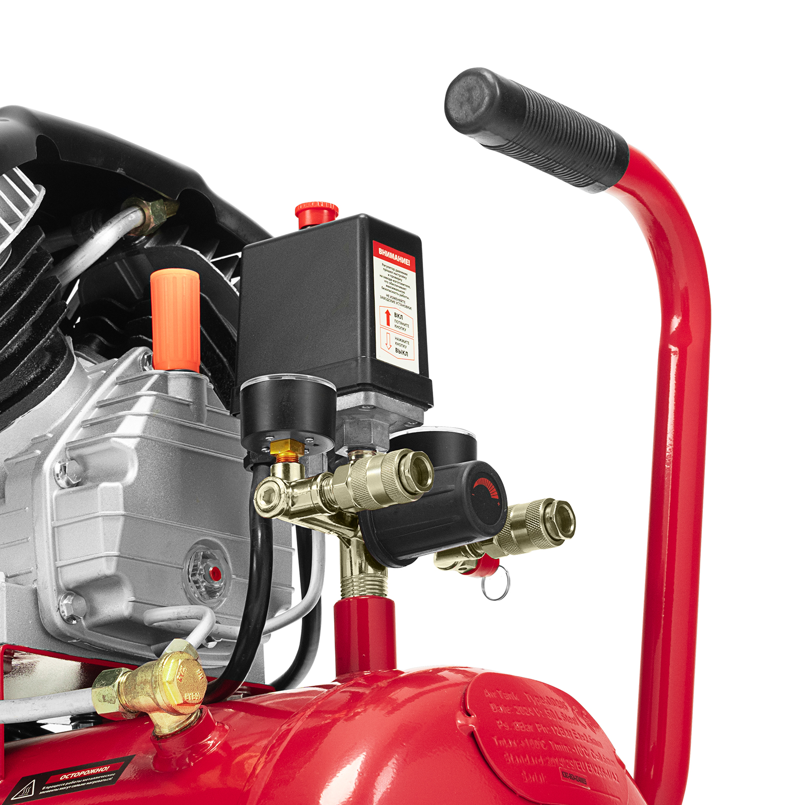 - Мобильность — благодаря колесам и рукоятке компрессор удобно разворачивать и перемещать по рабочей площадке.