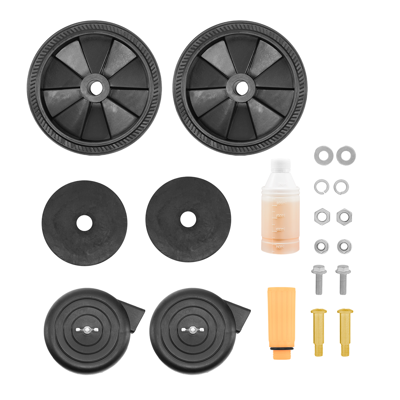 Компрессор - 1 штКолесо - 2 штВоздушный фильтр - 2 штВиброопора резиновая - 2 штКомплект крепежа - 2 штСапун - 1 штМасло компрессорное минеральное марка L-DAB - 250 млРуководство по эксплуатации с гарантийным талоном - 1 шт |