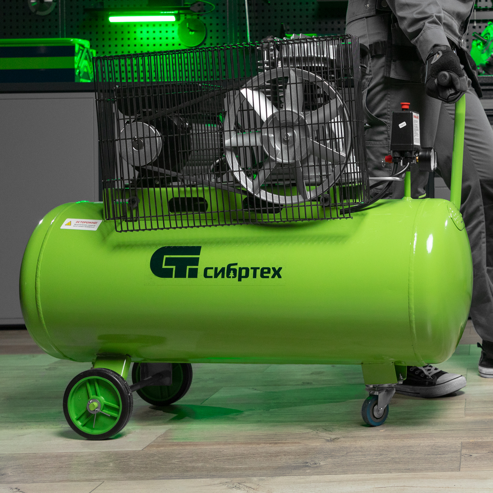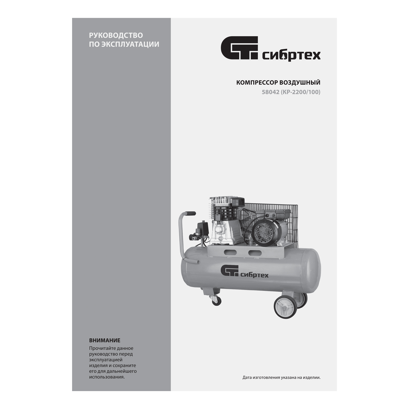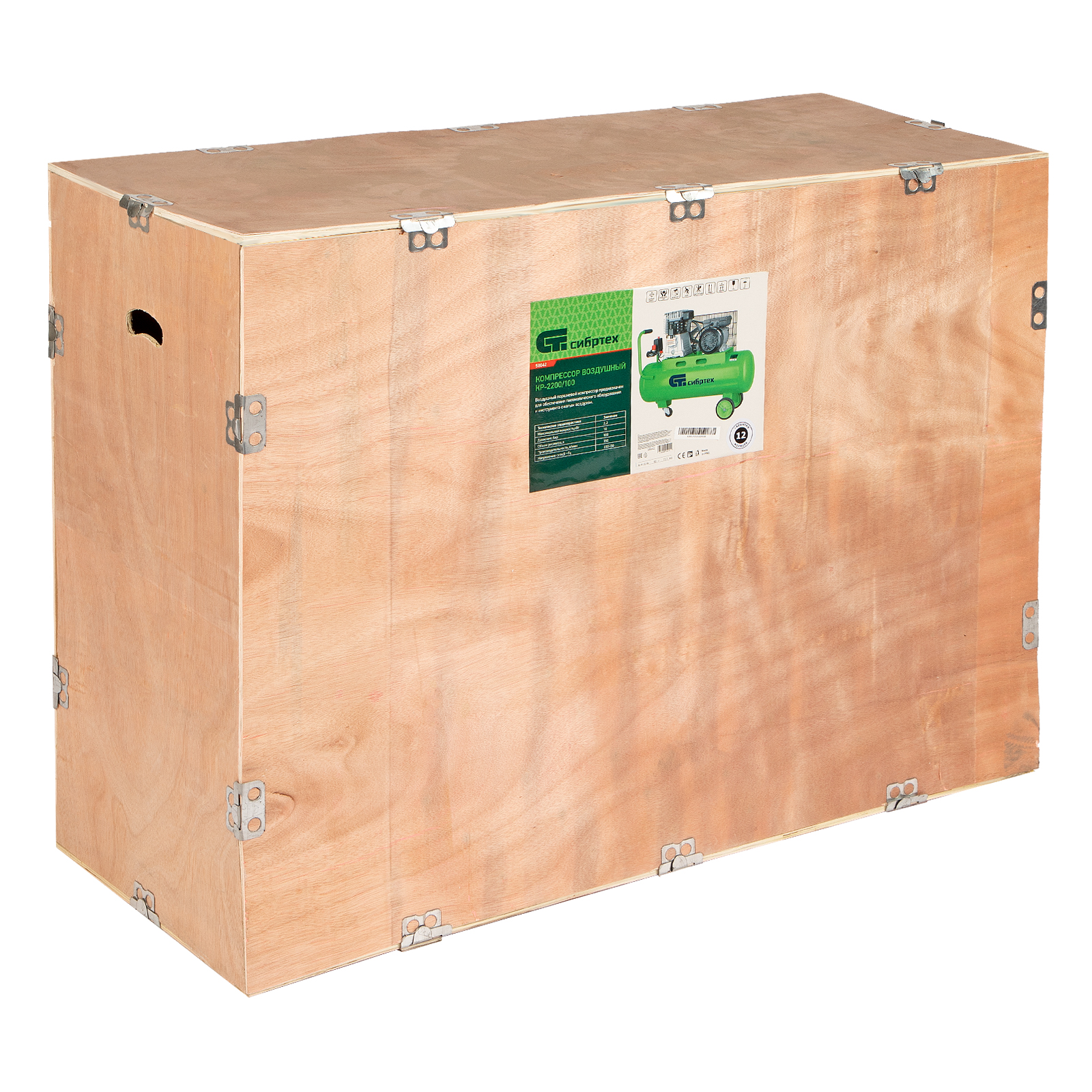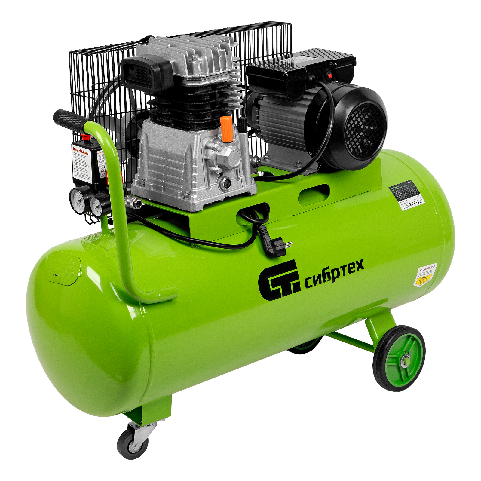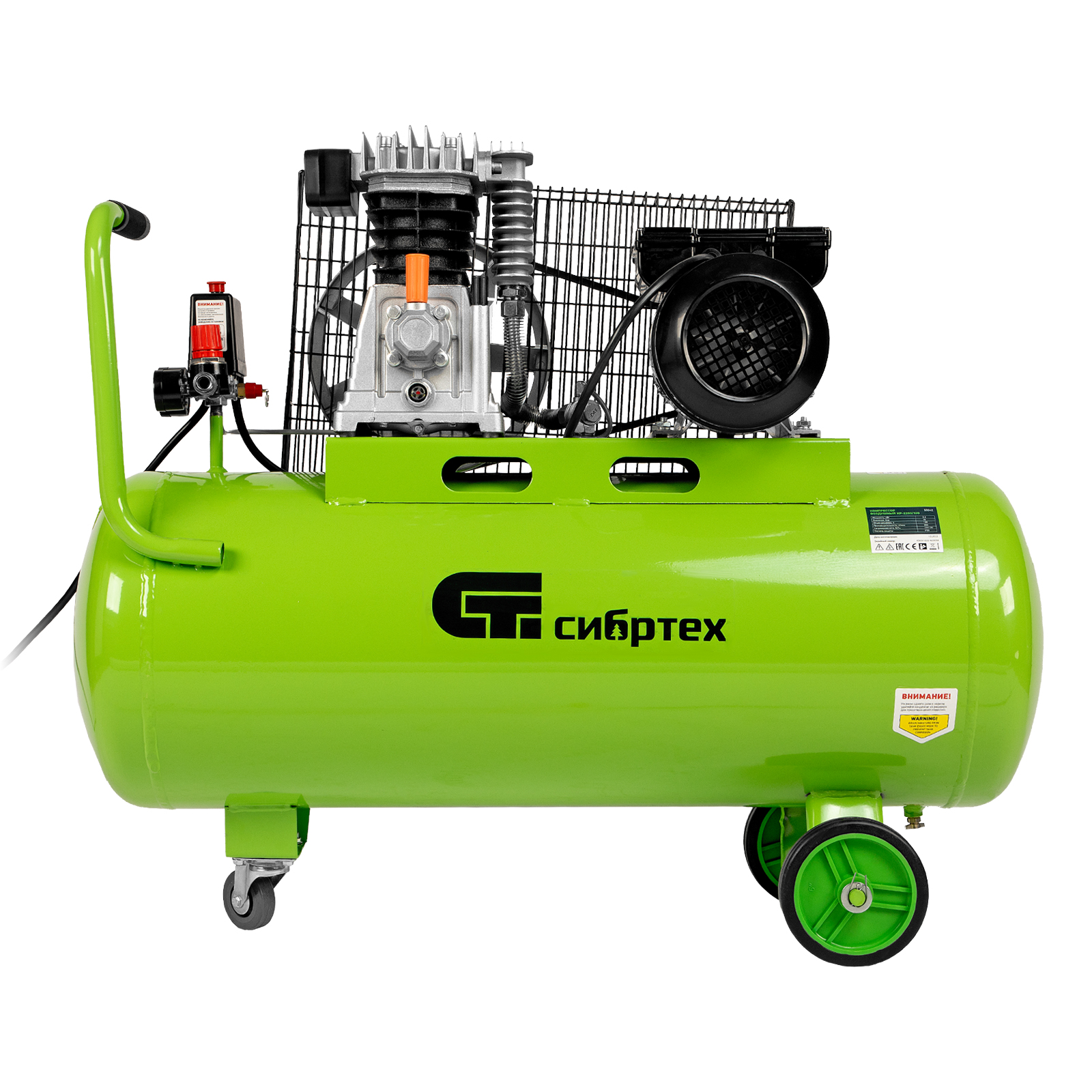 Компрессор воздушный КР-2200/100, 2.2 кВт, 350 л/мин, 100 л, ременной привод, масляный Сибртех в Санкт-Петербурге
