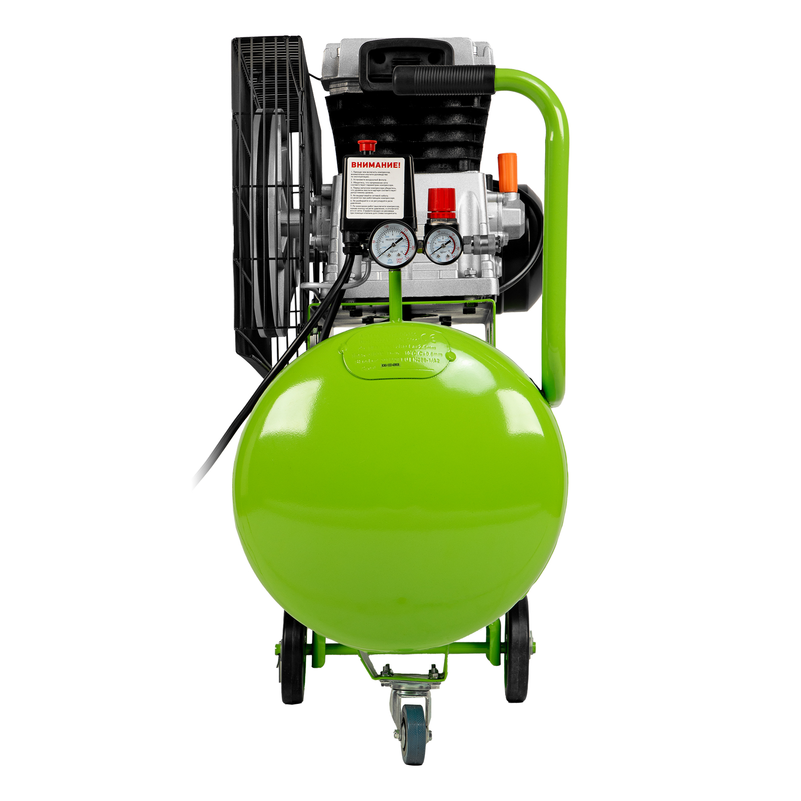 Компрессор - 1 штКолесо - 2 штКолесо поворотное - 1 штКомплект крепежа - 1 штСапун - 1 штИнструкция по эксплуатации и гарантийный талон - 1 шт |