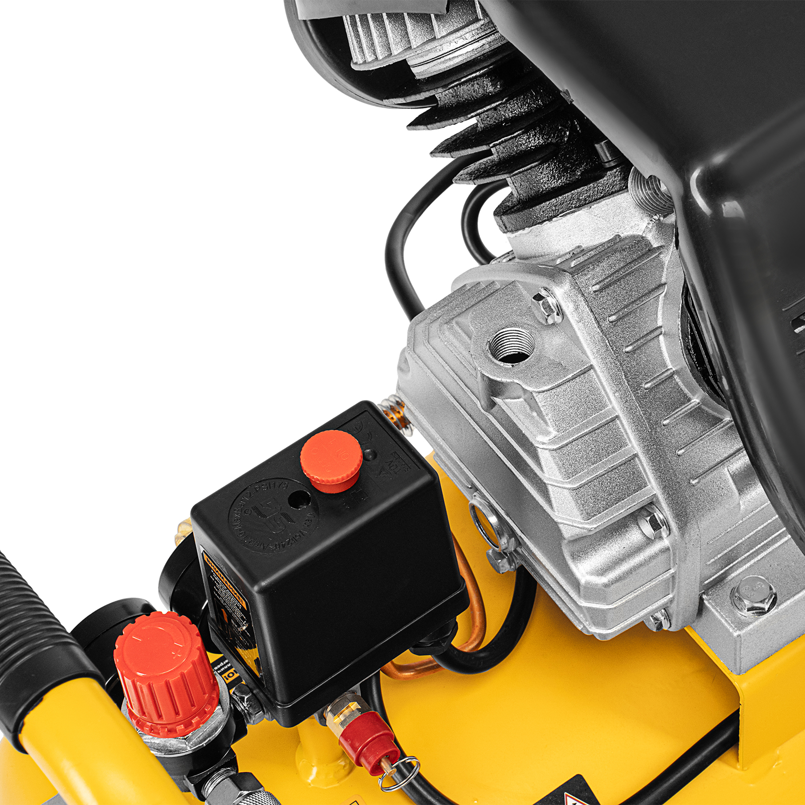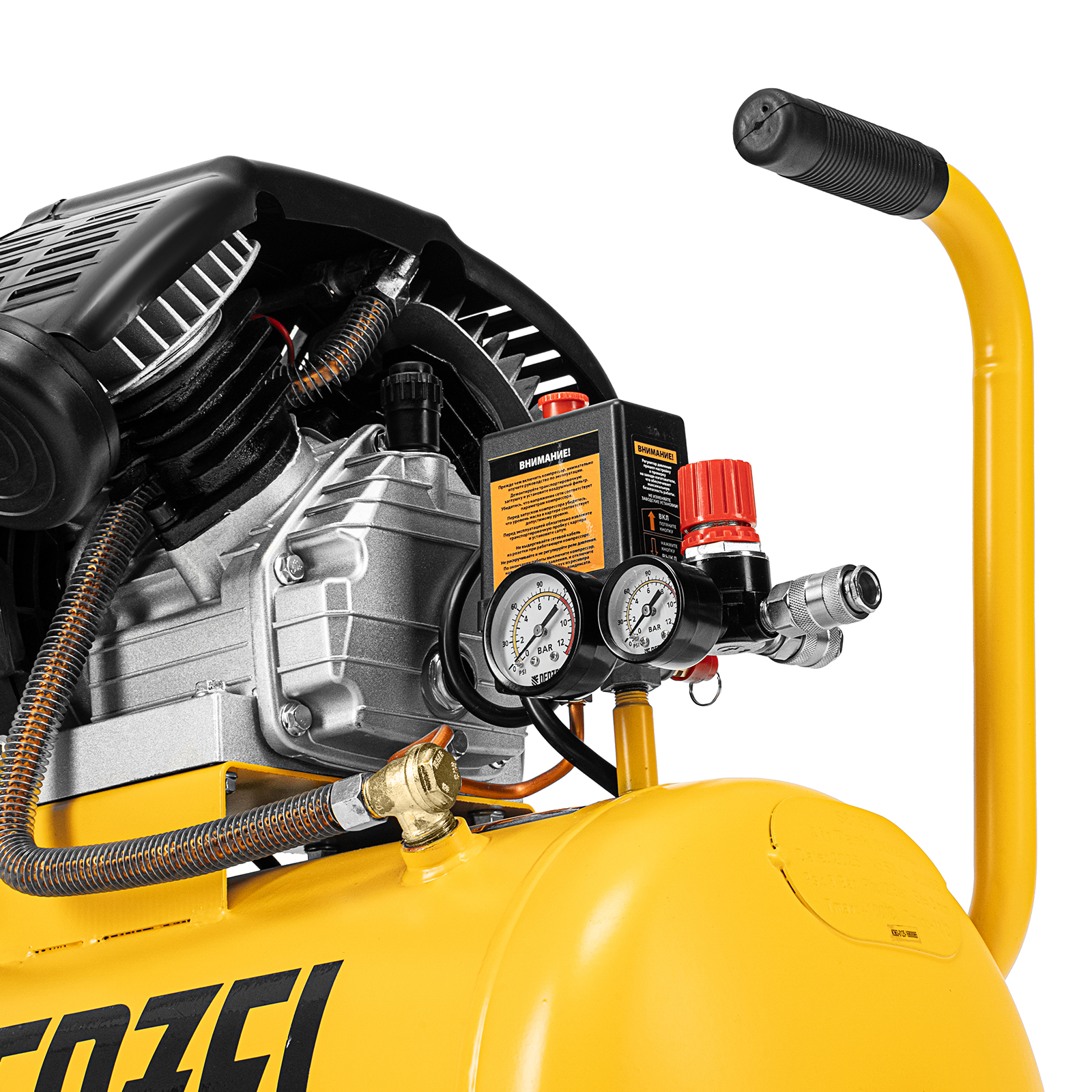 колеса и амортизирующие опоры - для снижения вибрации_мощный мотор и двухцилиндровая конструкция - высокая производительность_регулятор давления и 2 манометра для контроля давления и расхода воздуха_ресивер 50 литров - работа с пневмоинструментом со средним уровнем потребления воздуха_защита от перегрева обмоток мотора_защита от перегрузки |