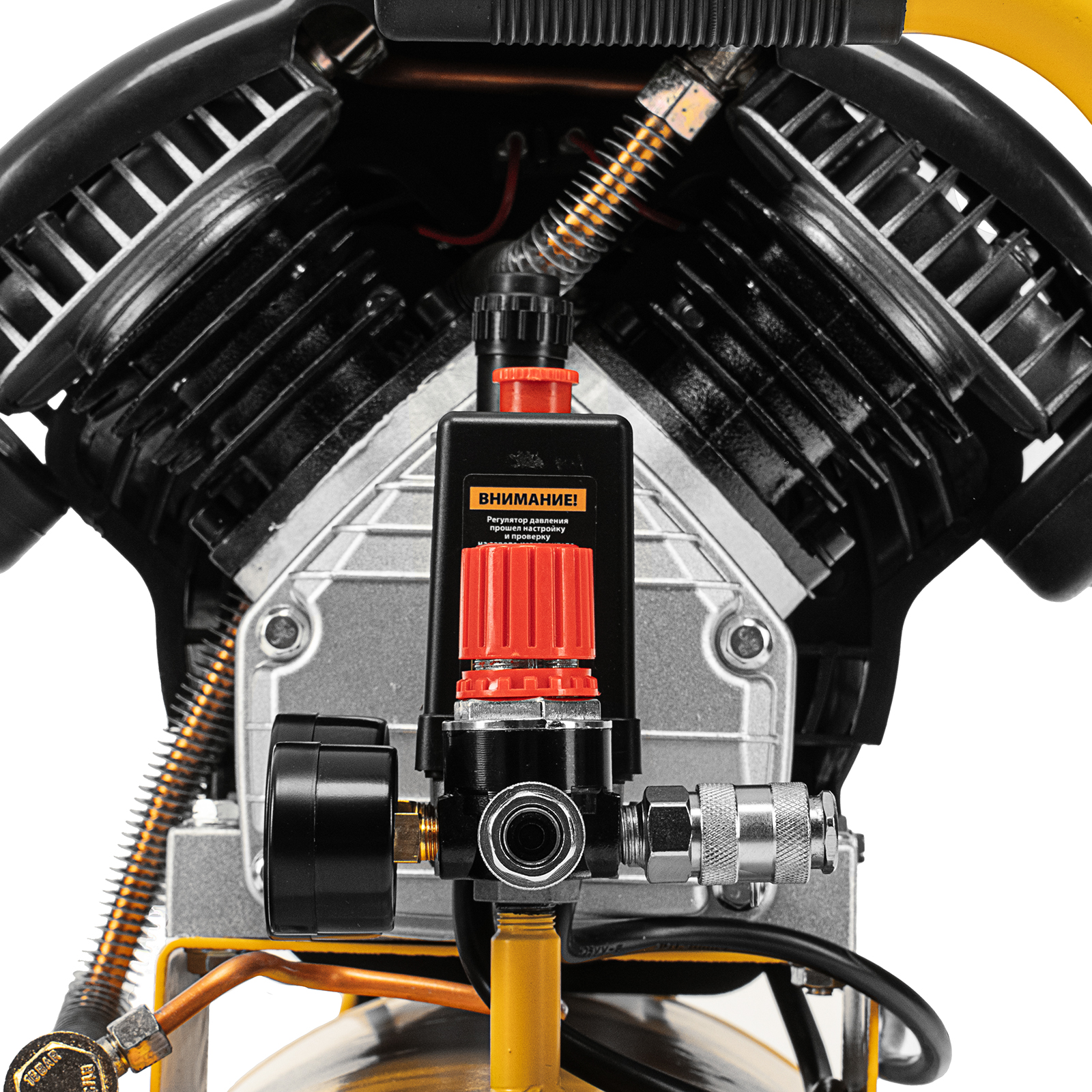 - Улучшенный теплоотвод — оребренные трубки воздуховода обеспечивают эффективное охлаждение поступающего в ресивер воздуха.