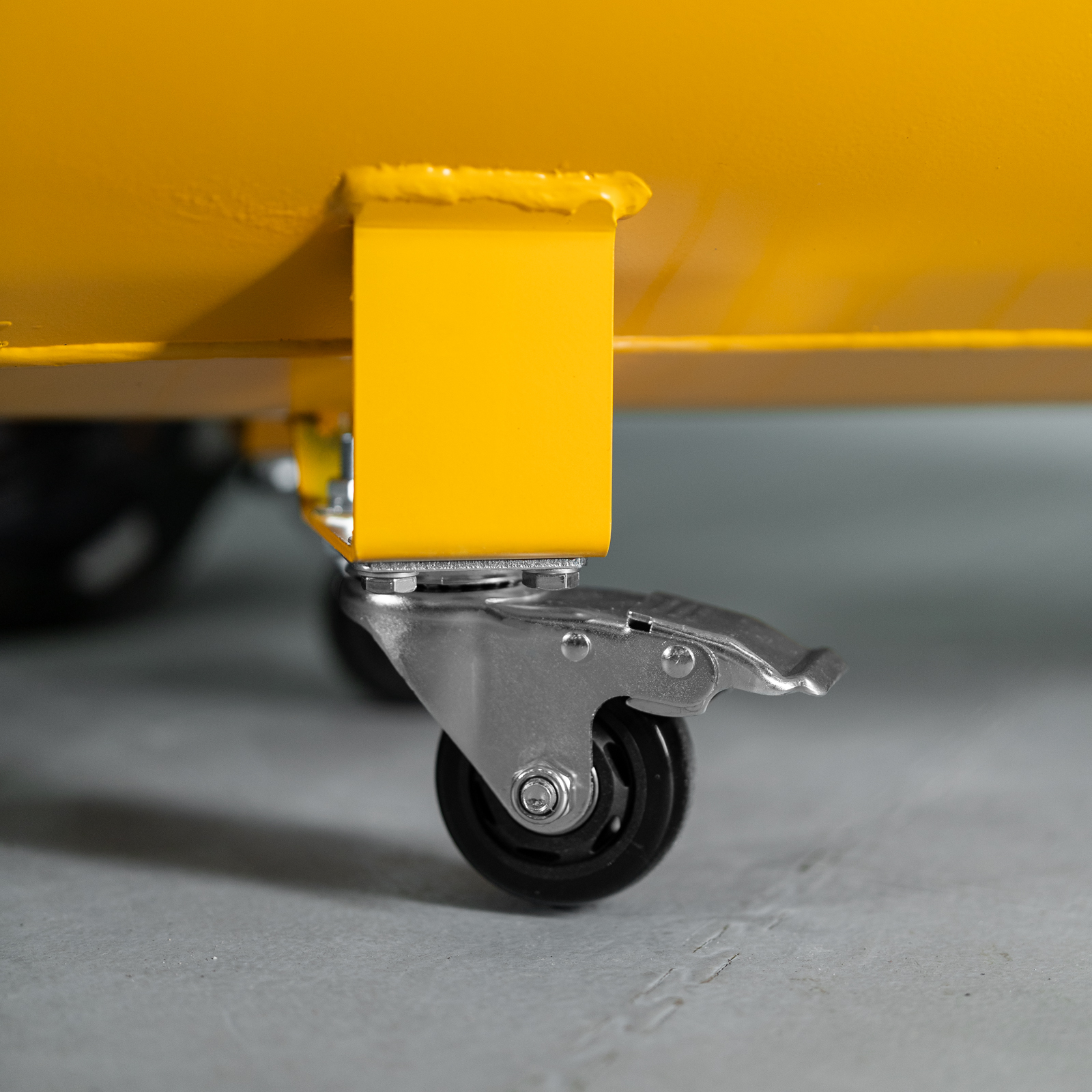 - Удобная транспортировка — на компрессоре установлены колеса, в т. ч. поворотные, и П-образная рукоятка.