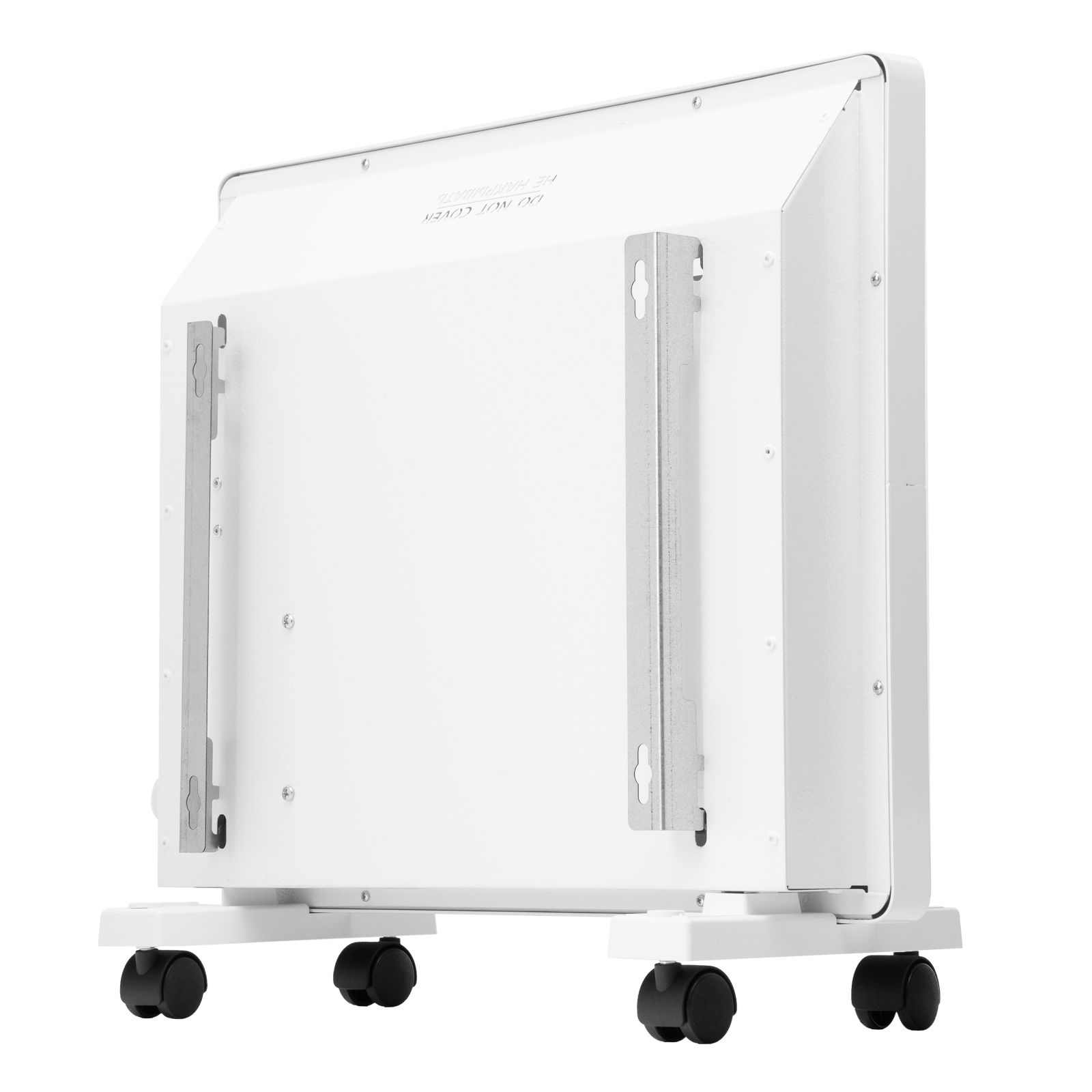 - Два варианта монтажа — конвектор можно расположить на полу или повесить на стену (колесные пары и кронштейн входят в комплект поставки).