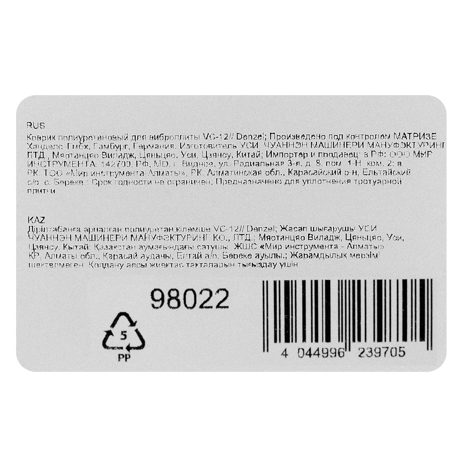 Коврик полиуретановый для виброплиты VC-30W Denzel в Санкт-Петербурге