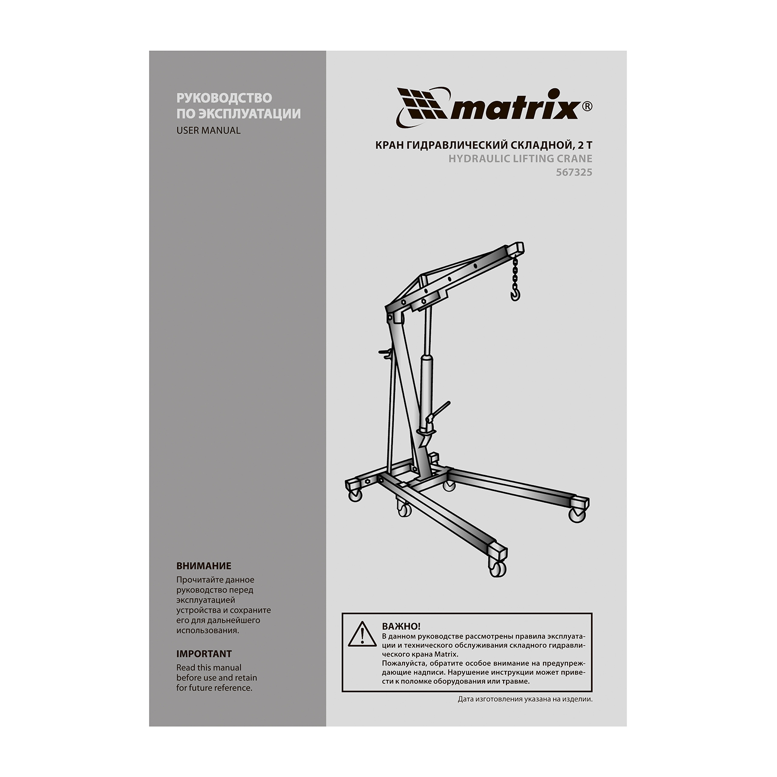 Кран гидравлический, 2 т, H подъема 25-2200 мм, складной (комплект из 2 частей) Matrix в Санкт-Петербурге